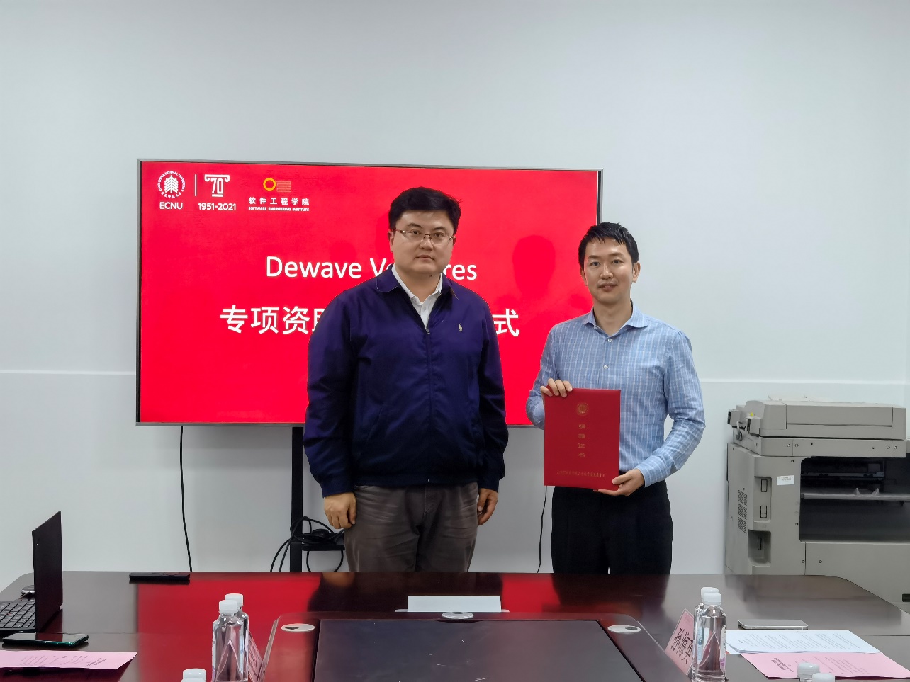 Dewave Ventures专项资助计划下设Dewave Ventures助学金和Dewave Ventures优秀学生奖学金,用于向软院学子提供经济资助和紧急救助,奖励在区块链技术和分布式金融等相关领域表现突出的优秀学生。陈铭松代表学院接受了捐赠并向褚康校友颁发捐赠证书。