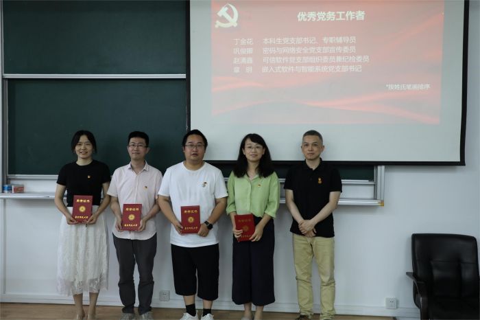 为庆祝中国共产党成立102周年,进一步推进主题教育走深走实,弘扬先进,树立标杆,激励德赢官网Vwin党支部、党员和党务工作者以饱满的热情和昂扬的斗志建设更加坚强有力的基层党组织,6月29日,学院召开2023年“两优一先”表彰会,授予在工作中表现突出的党员同志和党组织为德赢官网Vwin“优秀共产党员”、“优秀党务工作者”、“先进基层党组织”荣誉称号。全院教职工及获奖代表出席会议。表彰会由学院党委副书记曹桂涛主持。