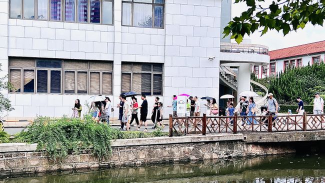 当天上午,校友们首先在文史楼前合影留念。随后,曹桂涛老师和校友们一起参观了校园,并在校训石碑前合影留念。