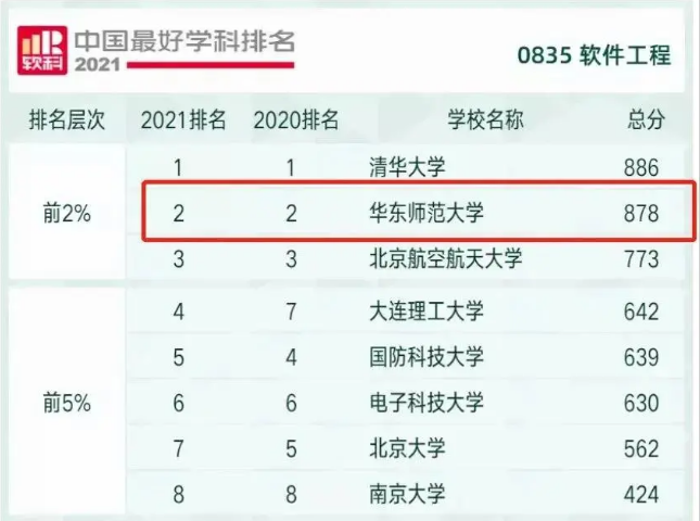 华东师大软件工程学科建设发展迅猛,在10月25日高等教育评价专业机构软科正式发布的“2021软科中国最好学科排名”中,保持全国第二的优势。