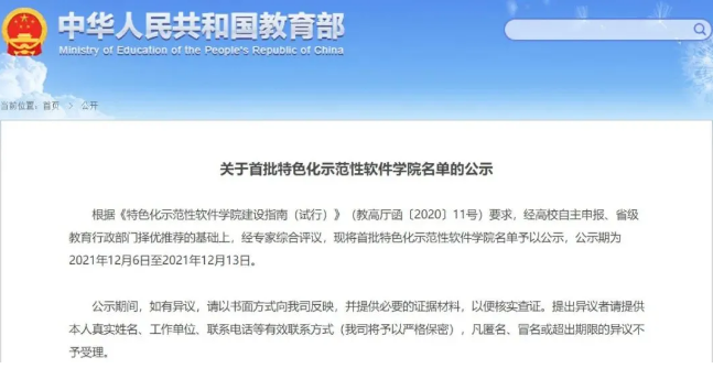 经专家综合评议、线上公示,于2021年12月正式获批“首批特色化示范性软件学院”,并即将进入实质性建设阶段。