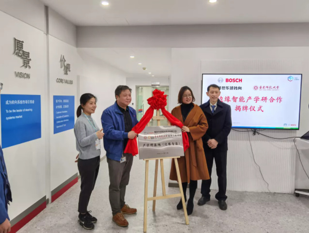 2021年12月8号上午,在博世华域转向系统有限公司上海总部,德赢官网Vwin和博世华域就合作成立产学研基地——“边缘智能联合实训基地”,举行挂牌仪式。