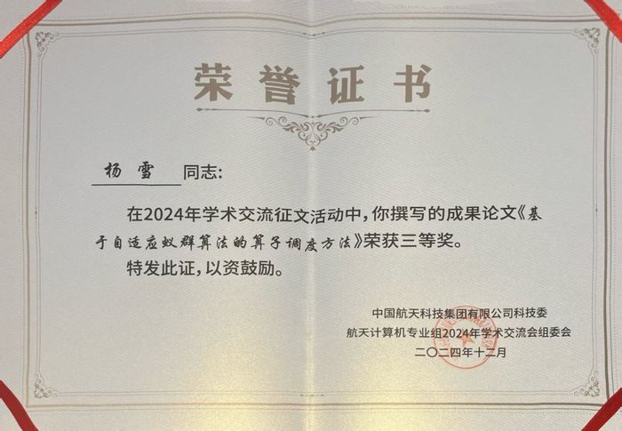 德赢官网Vwin(滴水湖国际软件学院)硕士研究生论文在中国航天学术交流中获评优秀论文奖