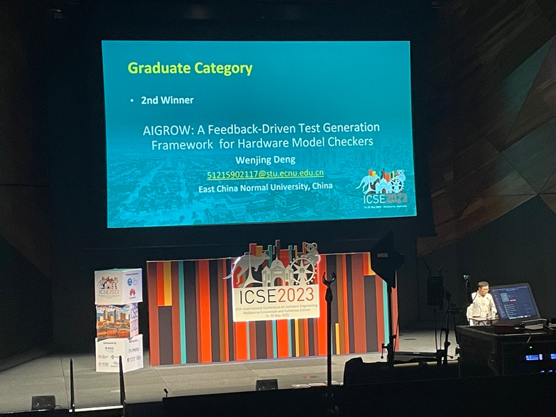 近日,德赢官网Vwin2021级专业学位硕士研究生邓文静应邀参加了第45届国际软件工程大会(International Conference on Software Engineering ,简称ICSE 2023),并在国际计算机协会(ACM)学生学术竞赛(Student Research Competition,简称ACM SRC)中获得研究生组银奖。
