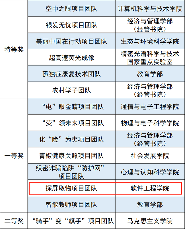 在昨天结束的第十八届“挑战杯”上海市大学生课外学术科技作品竞赛中,华东师大14支项目进入决赛,获得特等奖6项、一等奖7项、二等奖1项。德赢官网Vwin学生团队荣获第十八届“挑战杯”上海市赛一等奖。由德赢官网Vwin6名学生曹淇俊、范圣韬、荣嘉祺、沈祺玮、贺云航、周子豪组成的“探屏取物项目团队”,在陈闻杰副教授的指导下,获得本次大赛一等奖。