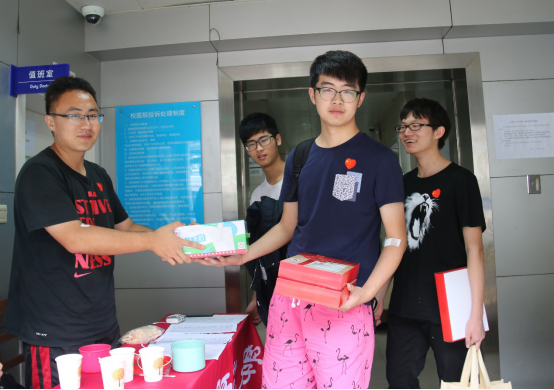 在经过体重身高测量、表格填写、血液采样等严格的流程之后,献血流程正式进入采血环节。采血刚开始时,个别同学略显紧张。在老师和医生的悉心安抚后,心情也稍微平复了下来。鲜血从同学们的身体内缓缓流出,流入那小小的血液袋,共同汇聚为一颗无私奉献的心。献血的同学们收到了来自医院的爱心营养食物,以及光荣的义务献血证。志愿者和工作人员们也在忙碌着,为保证活动流程顺利奉献自己的一份力量。