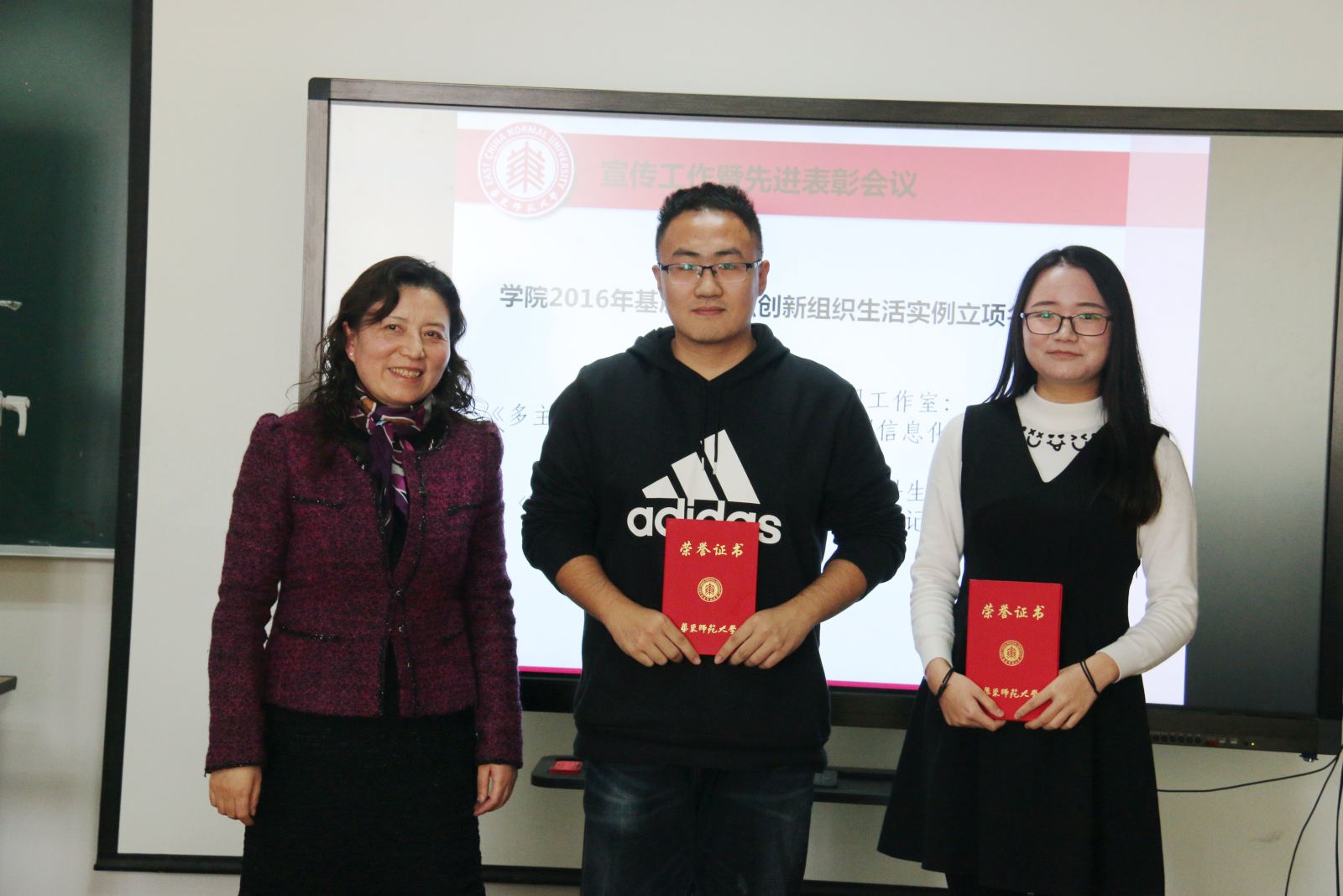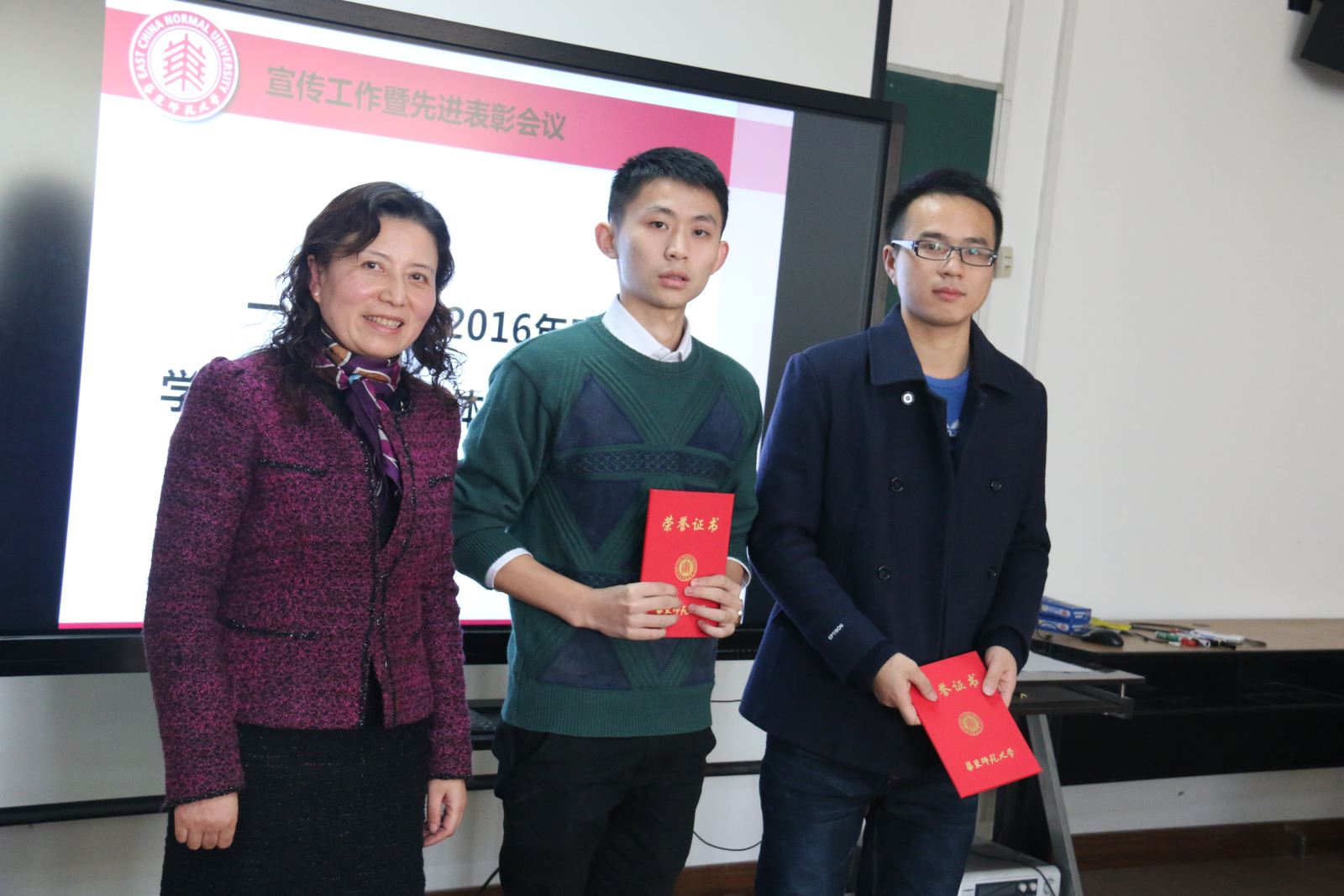 洪燕宣读了学院党委表彰决定,由李恺书记为获奖个人和集体颁发荣誉证书。朱丹等五位同志荣获宣传工作先进个人,学院团学联及研究生会信宣中心荣获宣传工作先进集体。另有两个学生支部项目获学院2016年基层党组织创新组织生活实例立项。