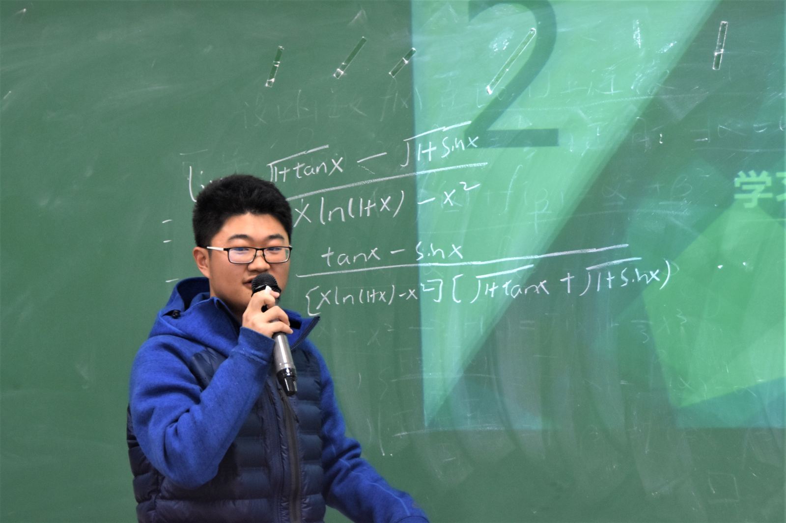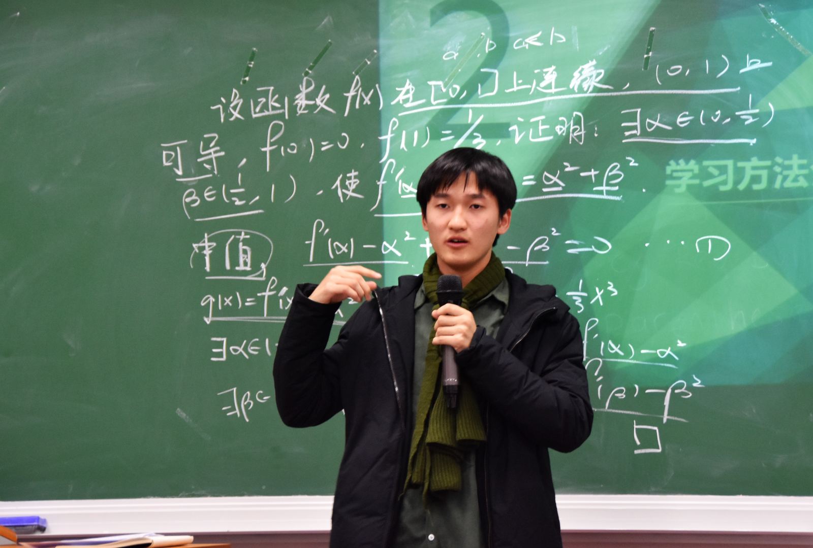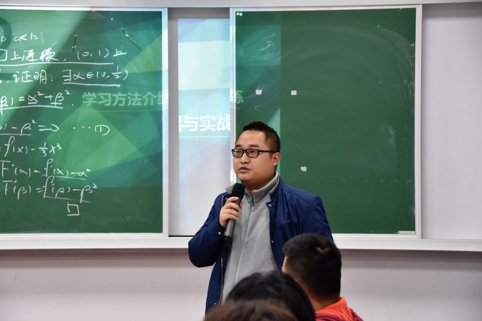 沙龙伊始,三位同学逐一上台讲分享了各自学习数学的方法。曹威杰同学结合一个证明题目,对他的数学学习方法“三步走”策略进行详细解说;陈杰同学提出大学生要学会独立思考、学数学要仔细理解书本知识和认真做课后习题、理论要和实践相结合;周华驰同学以高数课后的一个习题为例介绍了数学计算的一种算法。