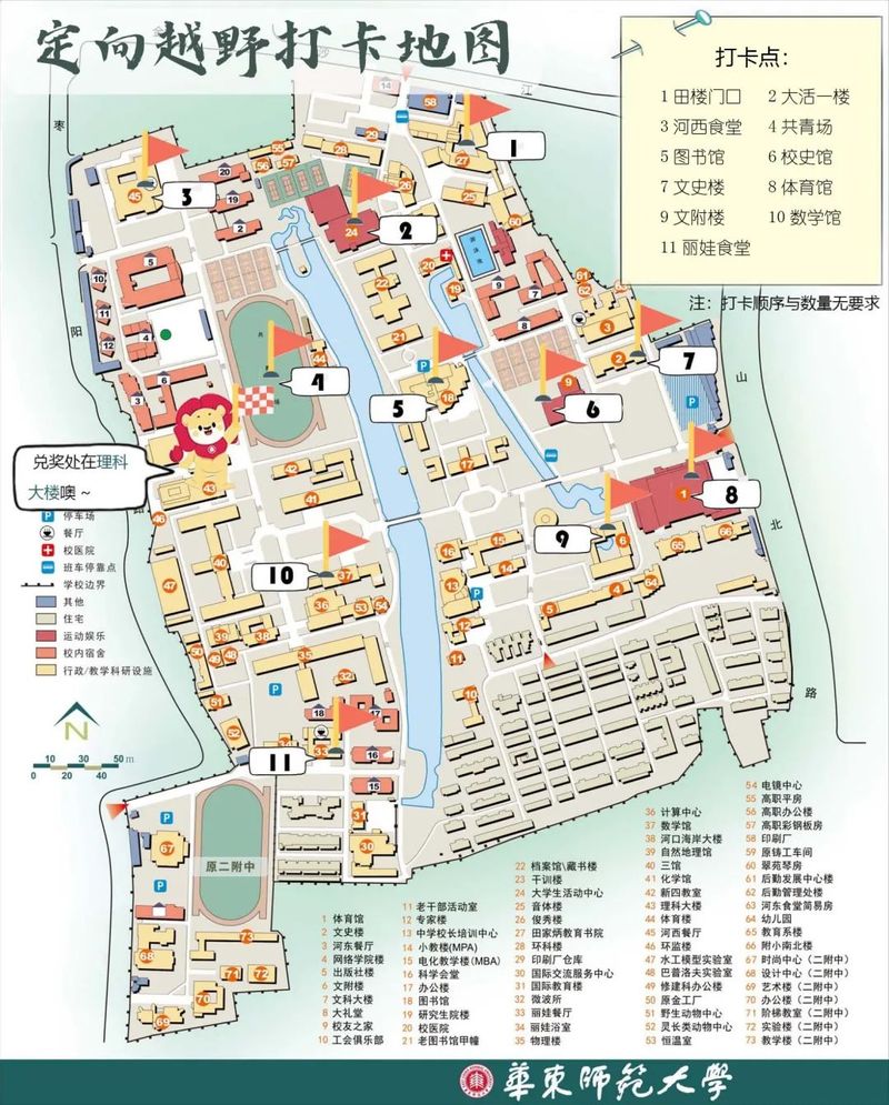 定向越野院庆活动开始后,参与者们首先需前往理科大楼二楼处领取打卡地图。
