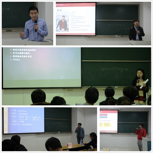 2015年4月15日周三15:00,软件学院研究生实验室宣讲暨本研牵手活动于理科大楼B222顺利举行,本次活动由软件学院学习拓展中心和2014级专业硕士、学术硕士研究生党支部联合承办,系软件文化节系列活动的第五站,也是软件学院第十三期联合党校活动之一。本次活动面向2013、2014级本科生,学院团委书记李恒超、研究生辅导员叶林娟、学院2014级专业、学术硕士研究生党支部全体党员应邀出席本次活动,2014级本科生廖昕岷主持本次活动。