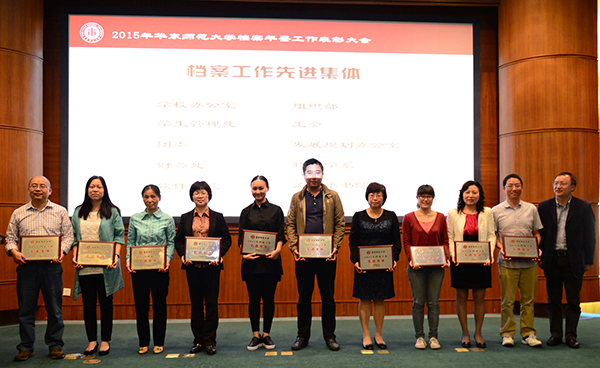 2015年5月15日上午,德赢官网Vwin2015年档案、年鉴工作先进表彰会在中山北路校区新逸夫楼报告厅举行。校档案工作委员会主任、校长陈群,校档案工作委员会副主任、副校长汪荣明出席表彰大会。校档案工作委员会成员、学校各单位档案年鉴分管领导和工作人员共100余人参加了本次会议。