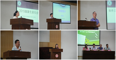 下午15点,大学生活动中心一楼报告厅座无虚席,一场别开生面的新生家长见面会在此举行。家长们对孩子即将开启的大学生活充满疑惑和期待。新生家长会由2015级辅导员李恒超老师主持,常务副院长王长波、党委副书记兼副院长洪燕、副院长姜宁康、计算机科学系主任贺樑等学院领导分别从学院的办学理念、师资队伍、人才培养、学科建设、学生工作等方面的情况分别向与会家长做了详细的介绍。各位老师的讲解深入浅出,结合学院的办学特色,从学生的专业起步及未来发展等向家长们传递着学院对新生的期望和要求。老师们指出家长们在关心孩子生活学习的同时,也应该放手让他们成长,在新的环境中,学会做人做事。