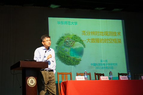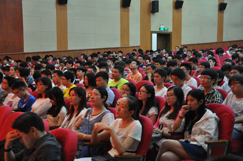 最后则是本次开学典礼的压轴戏,中科院电子所所长吴一戎院士为大家带来学术报告《高分辨率对地观测技术——大数据的时空框架》。院士简单介绍了对地观测的发展史、发展现状和应用,大数据的框架和应用,更多的则是经验和思想的分享。他提出成功者的特点:持之以恒,具有创新能力,希望同学们坚定信心,建立理想,摘到“大苹果”。吴院士的精彩发言让在场的新生们都深有感悟。