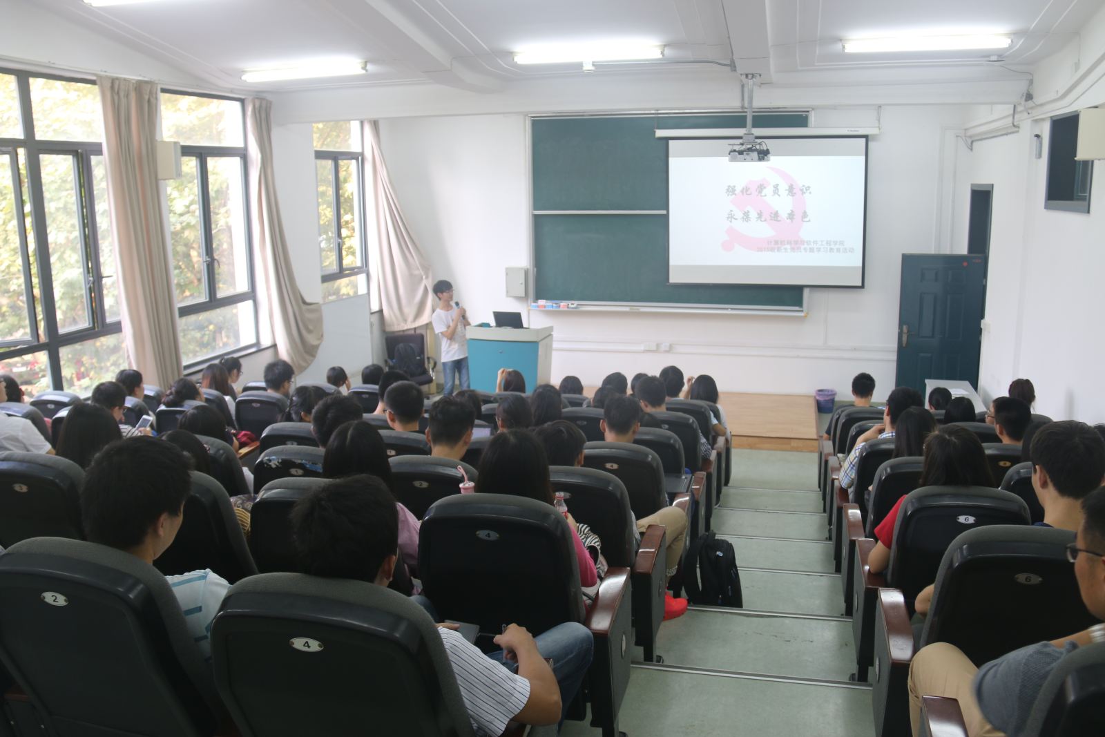 2015年9月24日下午,计算机科学与德赢官网Vwin75名2015年新生党员专题教育活动在数学馆201举行。院党委书记李恺,研究生辅导员张炜帆、叶林娟出席本次教育活动。李恺书记为党员教育活动致辞。