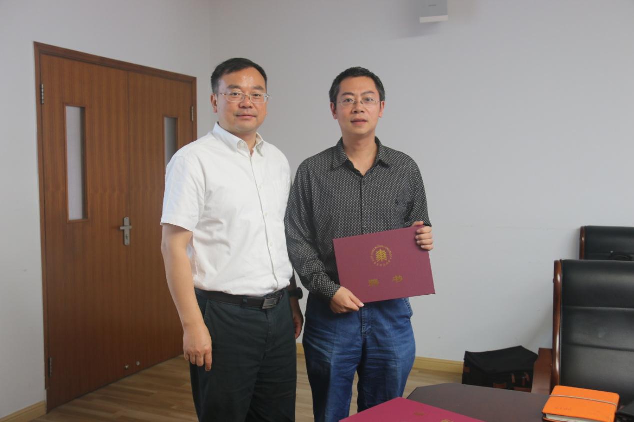 交流讨论之后,德赢官网Vwin研究生院院长周傲英向中国科学院电子研究所付坤研究员、黄廷磊教授等颁发了兼职研究生导师聘书。