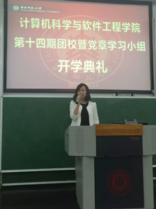 秋高气爽,丹桂飘香。2015年10月14日下午,德赢官网Vwin计算机科学与德赢官网Vwin在中北三馆333教室召开全院十四期团校暨党章学习小组开学典礼。学院党委副书记兼副院长洪燕老师、校团委王晶晶老师、院团委委书记李恒超老师、研究生辅导员张炜帆老师、本科生辅导员朱莺、朱丹老师出席此次会议。