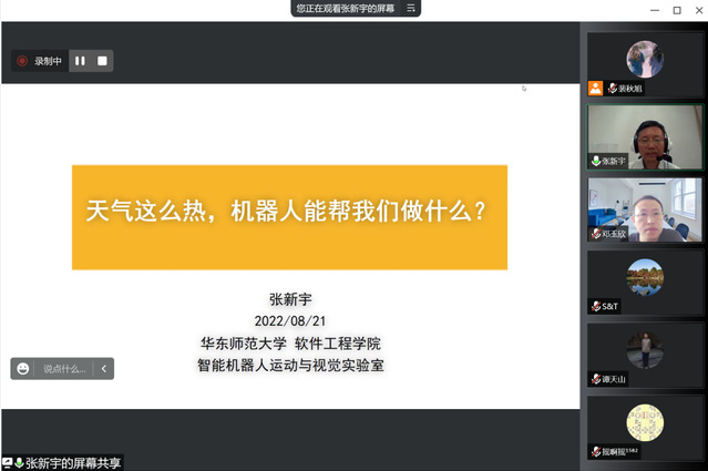 张新宇教授代表重点实验室为听众介绍了题为“天气这么热,机器人可以帮上什么忙?”的科普讲座。本次讲座主要介绍了全球气候变化及可能造成的如严重的土地荒漠化、洪涝灾害等结果。面对人类最大的一次危机,科学界普遍认为,人工植树造林是缓解气候变化的重要应对措施。未来,利用机器人技术,尤其是植树机器人、森林看护机器人,不但能有效应对全球的气候危机,还有望加速荒漠地区的生态恢复与重建。机器人技术可以极大降低造林的难度,使得造林更快、更好、更稳定。本次讲座还为市民朋友介绍了如何利用机器人技术、全球定位系统、视觉技术实现植树机器人,以及如何实现大量机器人构成的机器人集群。