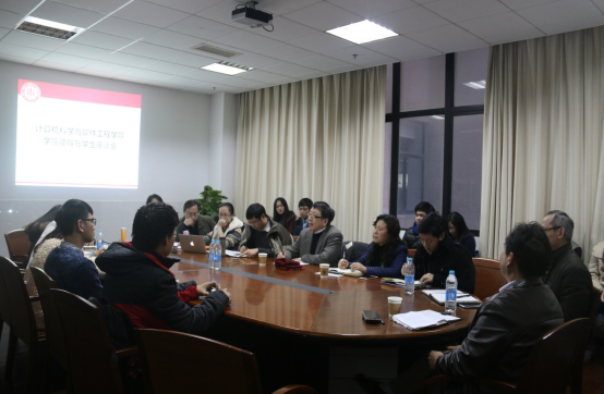 为了更好地服务学生,提高教学质量,计算机科学与德赢官网Vwin于2015年12月30日下午在理科大楼B211会议室举行了学院领导与学生座谈会。学院院长何积丰院士、院党委书记李恺老师、院常务副院长张桂戌老师及王长波老师、院党委副书记兼副院长洪燕老师、副院长姜宁康老师、软件科学与技术系系主任朱惠彪老师、嵌入式软件与系统系系主任陈仪香老师、辅导员及30余名本科生及研究生参加了座谈会。座谈会由洪燕老师主持。