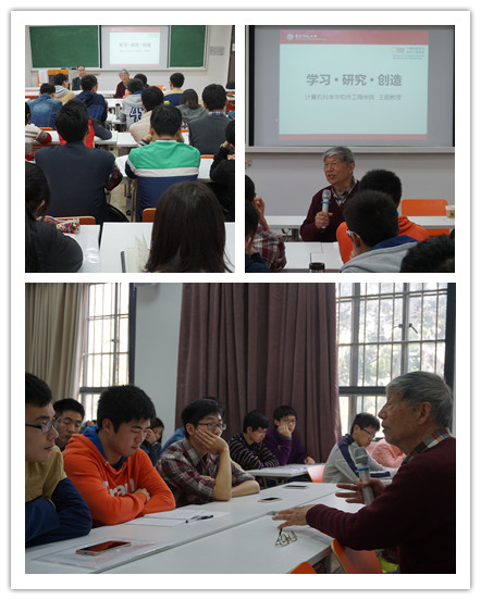 2016年4月9日(周六)下午,计算机与软件学院关工委王行恒、王能两位教授与计算机科学与德赢官网Vwin·河口海岸学院联合党校学员们相聚在三馆123,就学习方法、研究心得作面对面交流。