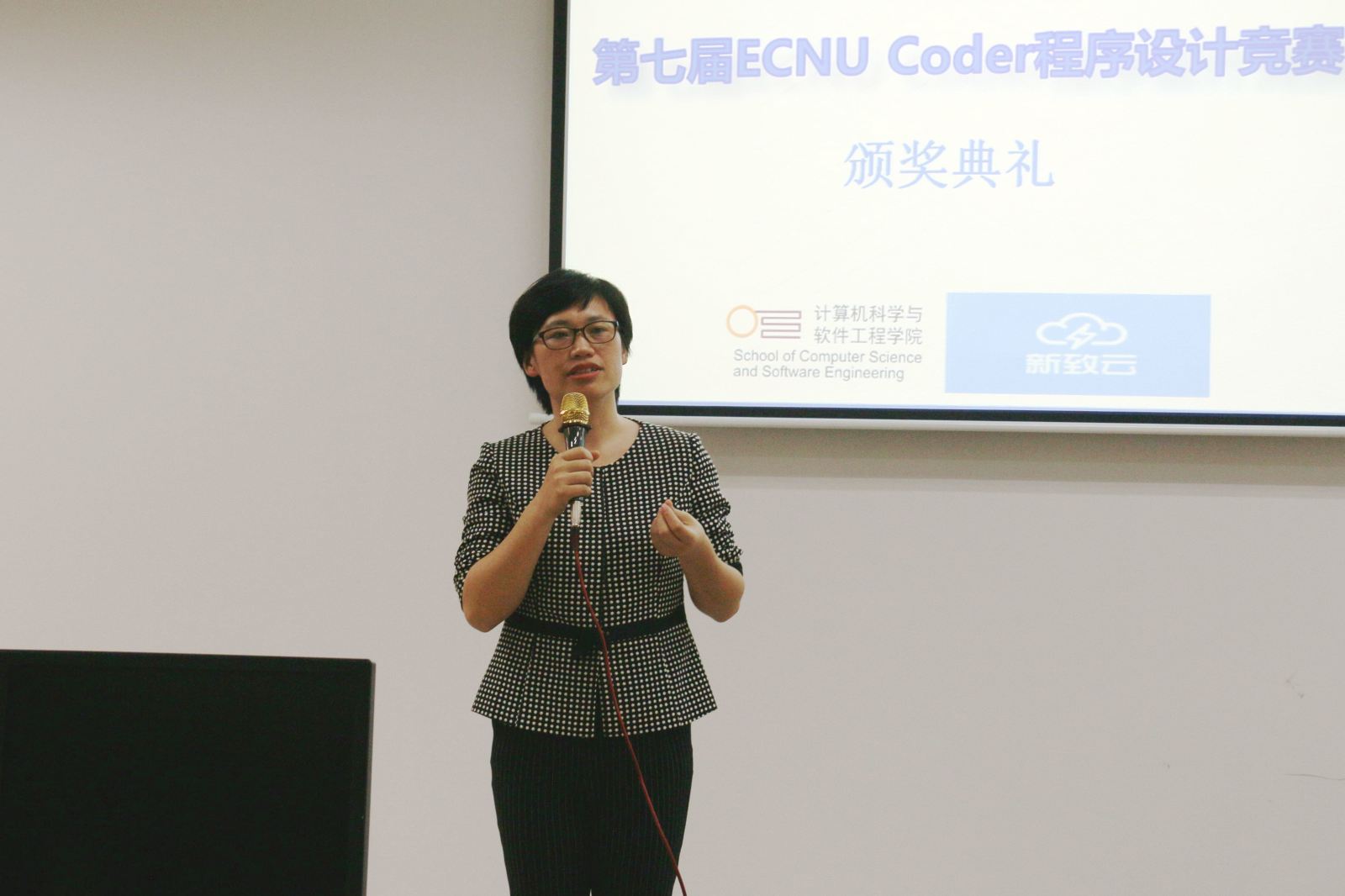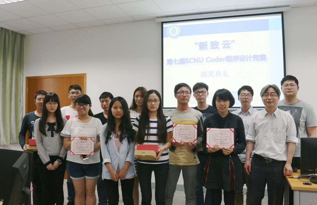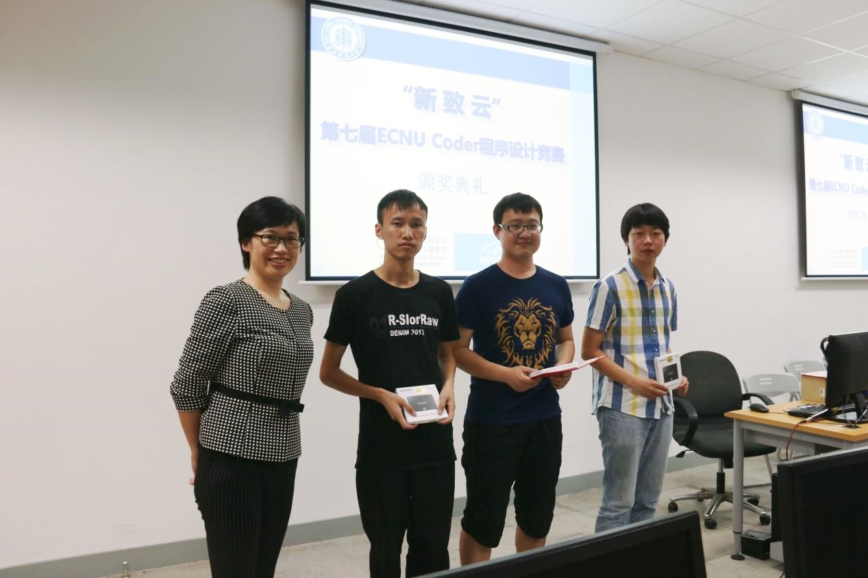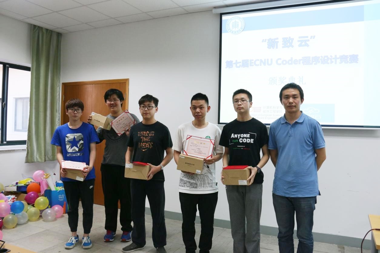 计算机科学与德赢官网Vwin第七届ECNU Coder程序设计竞赛5月25日下午在计算中心火热举行。来自德赢官网和信息科学技术学院、数学系、生物学系等院系的近300名学生参加了此次比赛。本次比赛由德赢官网团学联科创中心主办,并得到了学院ACM团队和新致软件公司的大力支持。新致软件高级副总裁王晶晶女士、新致云项目经理马骁、新致云品牌公关经理朱菊和新致云活动策划经理白杨出席了颁奖典礼,学院党委书记助理李彦垒、软件工程系副教授杜育根、辅导员李恒超、朱丹老师到场观战。本次竞赛旨在摸底学生编程能力,激发学生编程兴趣,引导学生重视实践能力培养。