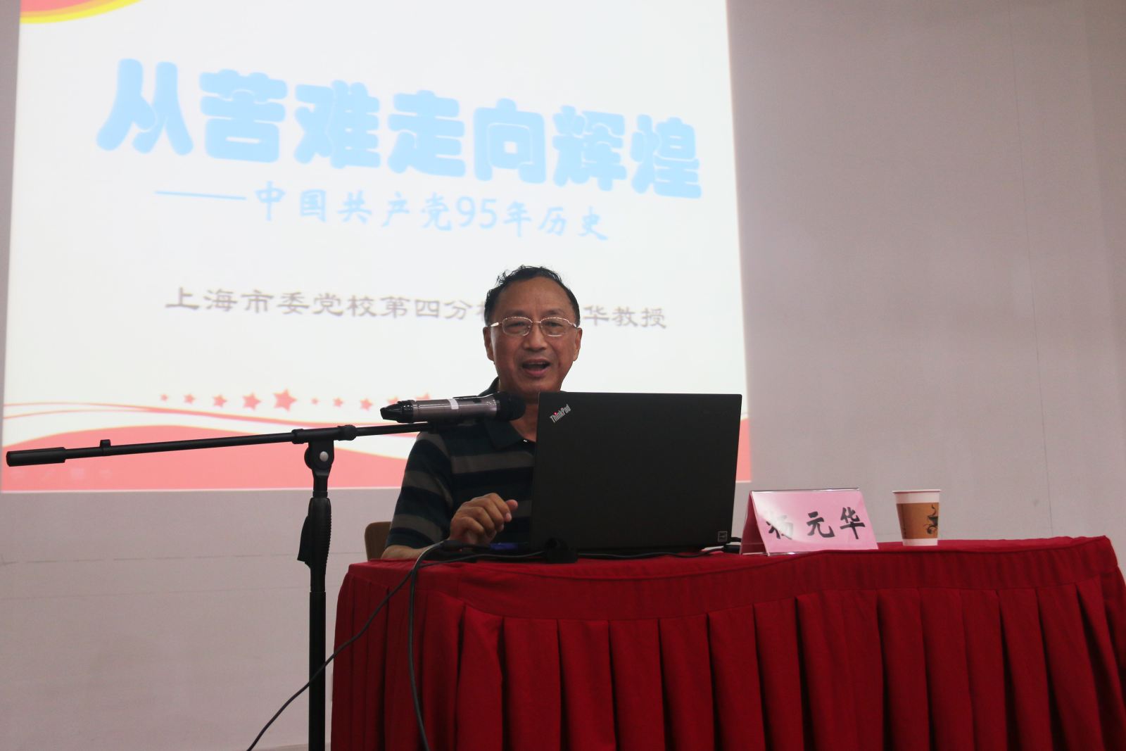 表彰会后,学院党委带领全体师生党员开展专题学习,特邀原上海市科技教育党校常务副校长、上海市纪念建党95周年和红军长征胜利80周年主题宣讲专家组成员杨元华教授作《从苦难走向辉煌——中国共产党95年的历史》专题报告。