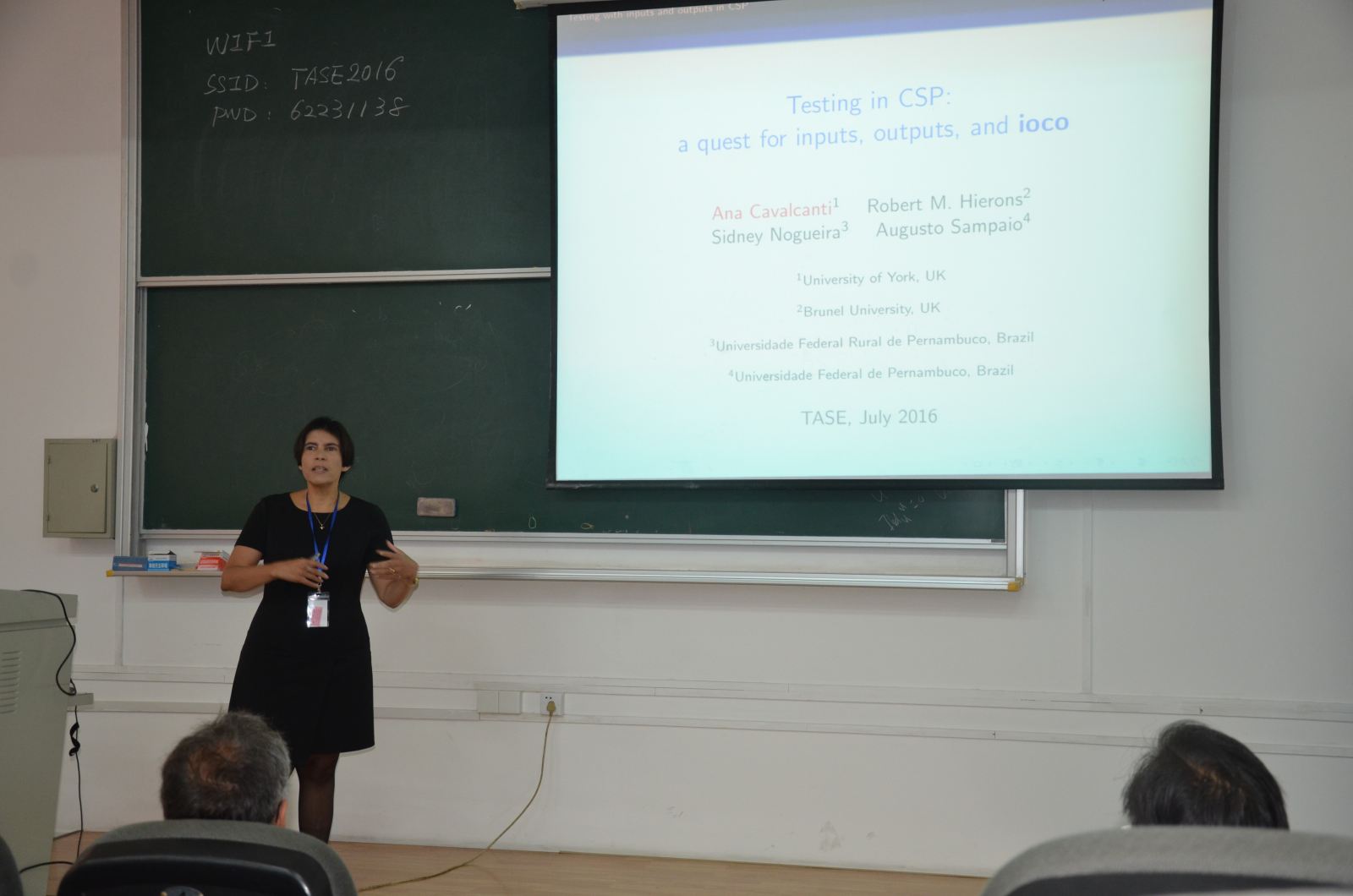 英国约克大学Ana Cavalcanti教授在形式化语义领域建树颇丰,在会议作了题为“A Suspension-trace Semantics for CSP”特邀报告,探讨了CSP的暂停轨迹语义问题。研究内容引起了与会专家的广泛兴趣,并展开了深入交流。