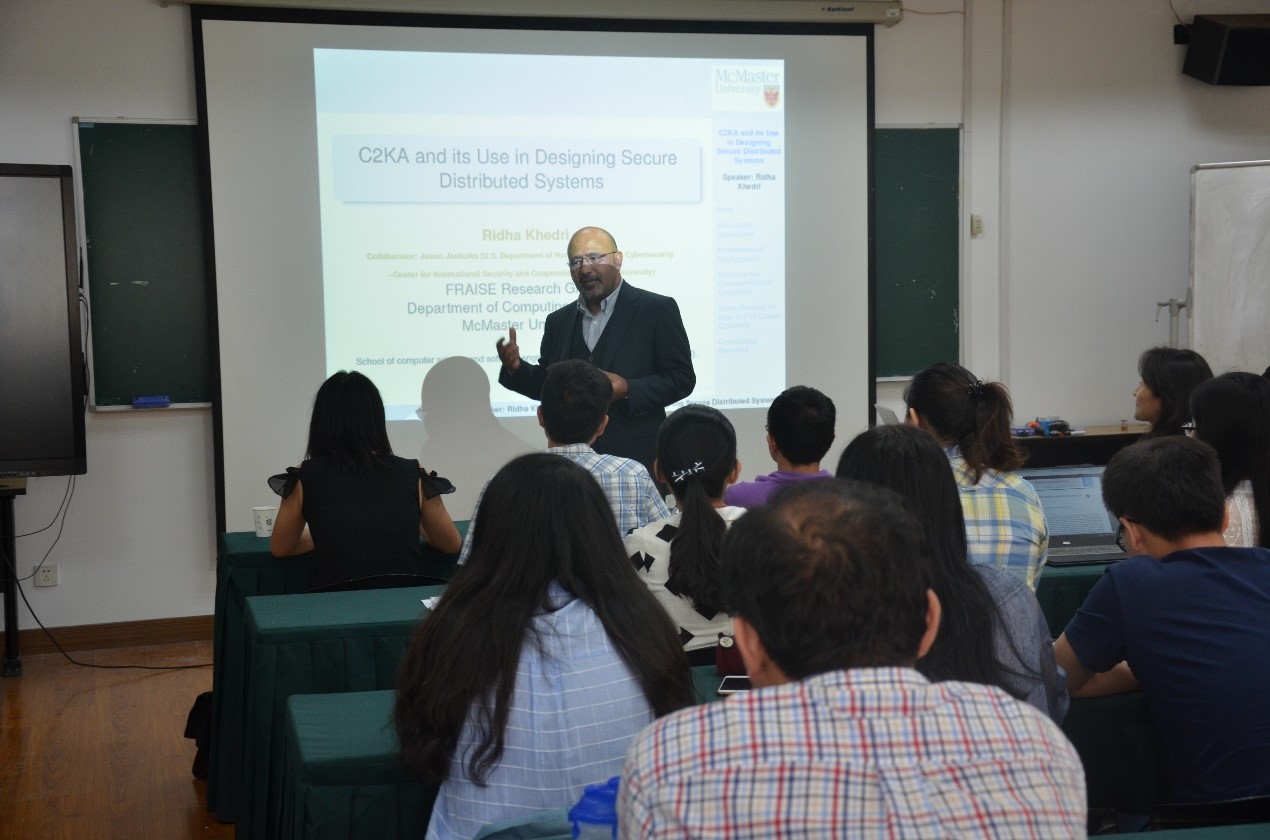 2016年9月6日,加拿大麦克马斯特(McMaster)大学Ridha Khedri教授应邀至德赢官网Vwin计算机科学与德赢官网Vwin,在理科楼B1002为德赢官网师生作了题为《Communicating Concurrent Kleene Algebra and its Use in Designing Secure Distributed Systems》的学术报告,并进行了深层次的学术交流。