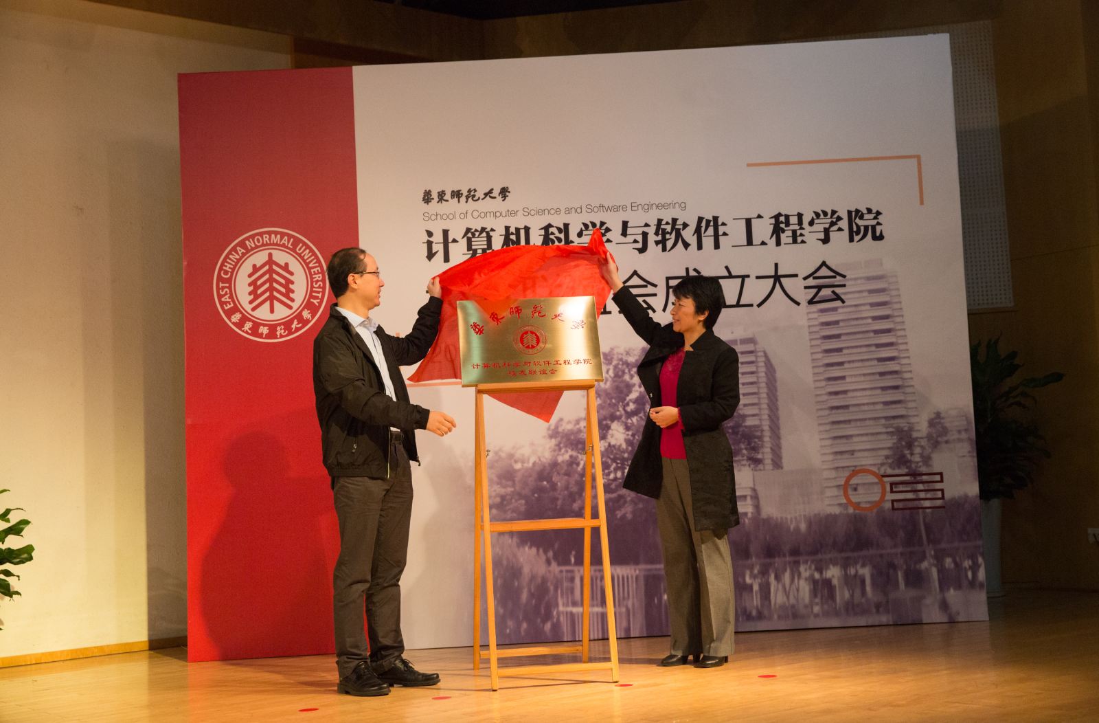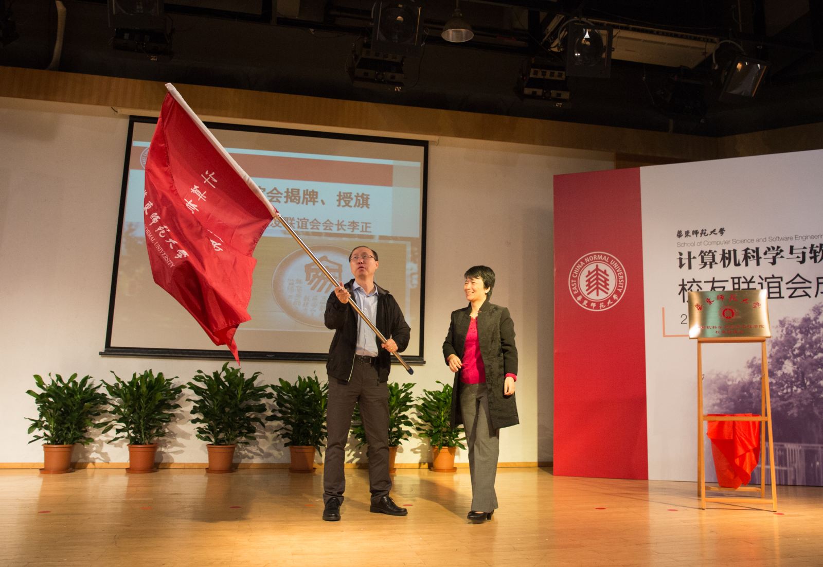 副校长梅兵与校友联谊会会长李正为校友联谊会揭牌