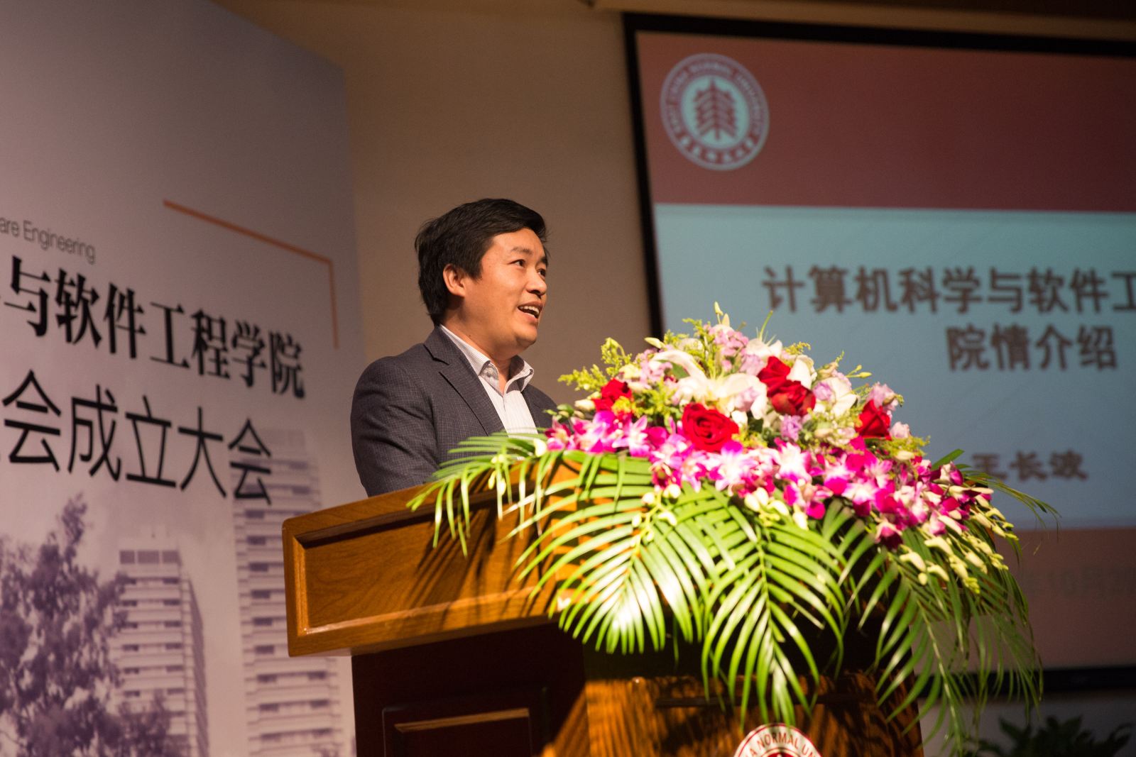 常务副院长王长波介绍学院发展情况,向与会的校友们分享了学院概况、历史沿革、学科建设、人才培养、近期要闻等发展状况以及学院的未来发展规划,并表示国际化是计算机科学与德赢官网Vwin的发展目标与理念,始终把人才培养作为首要任务。希望在计算机科学与德赢官网Vwin校友的共同帮助和参与下,将学科发展推向一个新的高度。