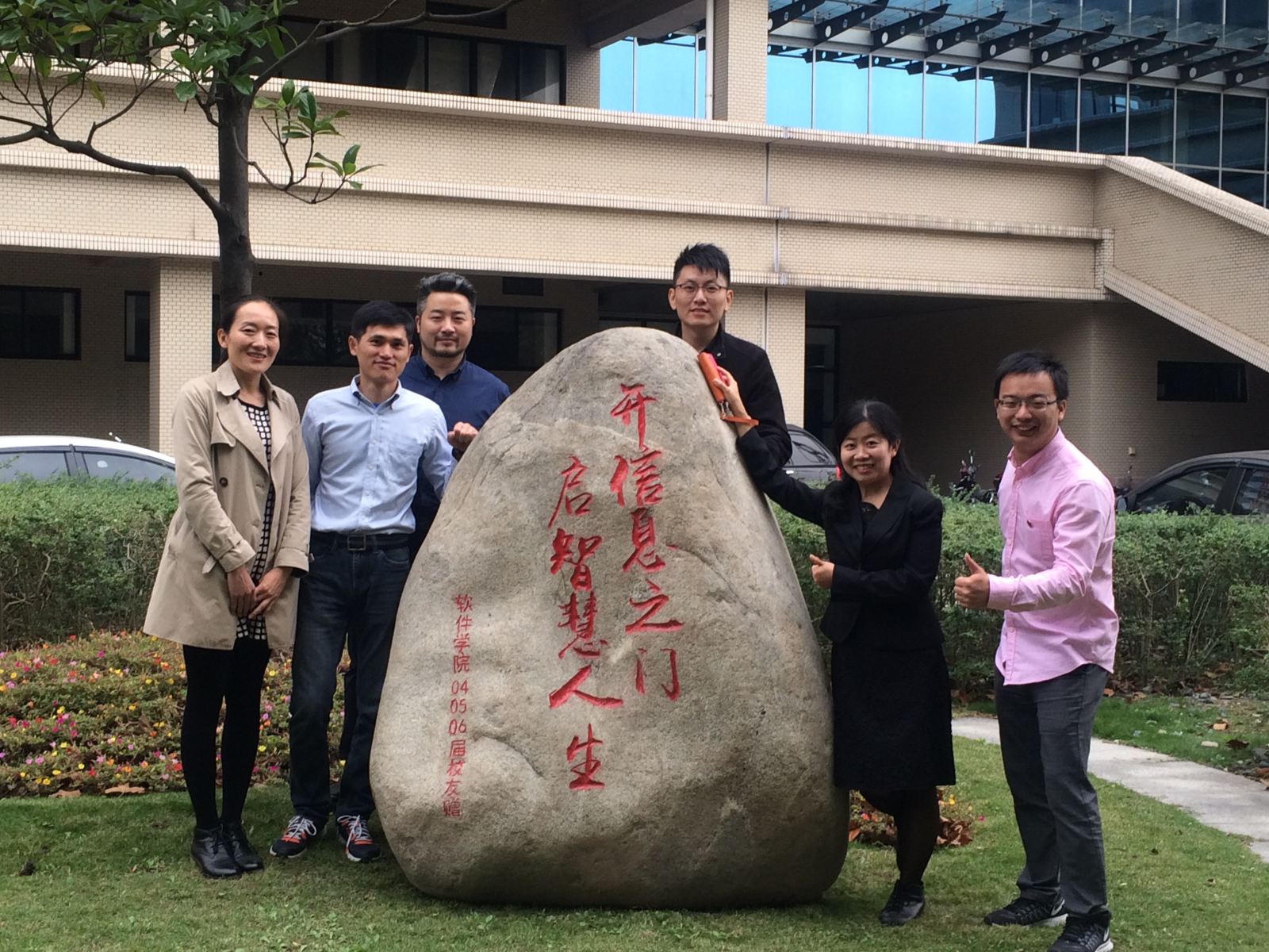 校友徐刚代表2004-2006届毕业校友向学院赠送纪念物——一块放置在中山北路校区理科大楼前草坪的巨石,石上镌刻着“开信息之门,启智慧人生”,表达对学校栽培的感恩,也寄托着校友们对学院继续开创辉煌的祝福。