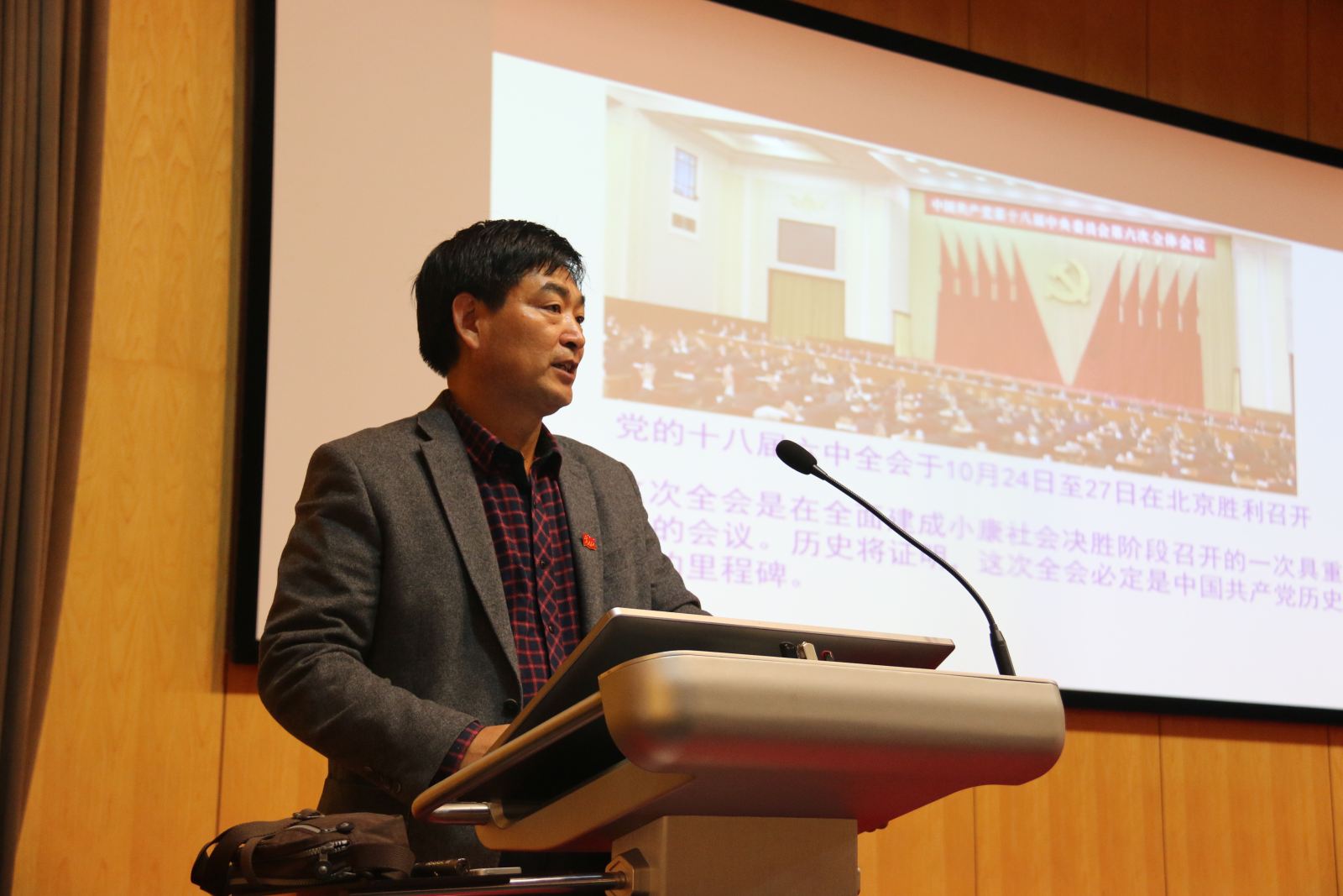 刘靖北教授以全会的重大意义为切入点展开解读,他指出,这次全会是在全面建成小康社会决胜阶段召开的一次具重要意义的会议。历史将证明,这次全会必定是中国共产党历史上重要的里程碑。详细介绍了此次全会的主要成果,包括三个重要讲话、三个重要文件、确立一个核心:全会明确习近平同志在党中央和全党的核心地位。正式提出“以习近平同志为核心的党中央”并写入全会文件,对保证党和国家兴旺发达、长治久安,具有十分重大而深远的意义。研究一个主题:全面从严治党。