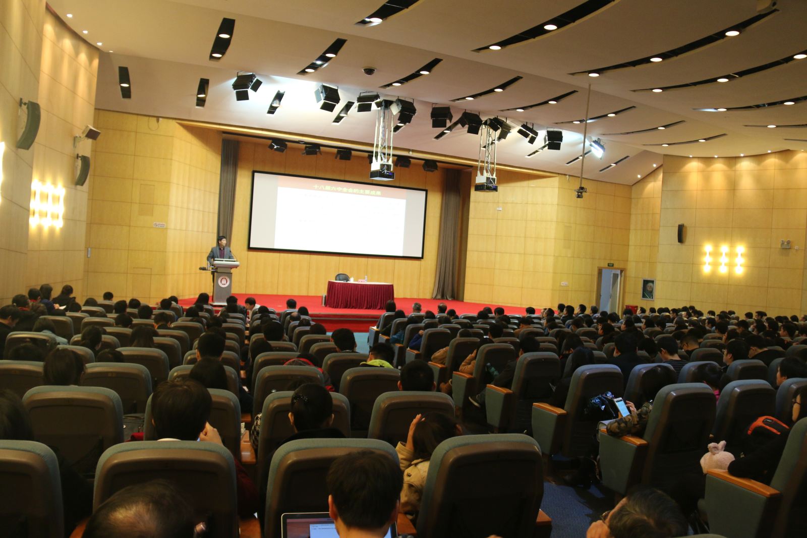 12月21日下午,科学会堂座无虚席,计算机科学与德赢官网Vwin党委特邀上海市委六中全会精神宣讲团成员中国浦东干部学院刘靖北教授,做题为“加强和规范党内政治生活,把全面从严治党的要求落实到位”为主题的报告,全面解读十八届六中全会精神,学院全体教职工和学生代表共350人参加了本次会议,报告会由学院党委书记李恺主持。
