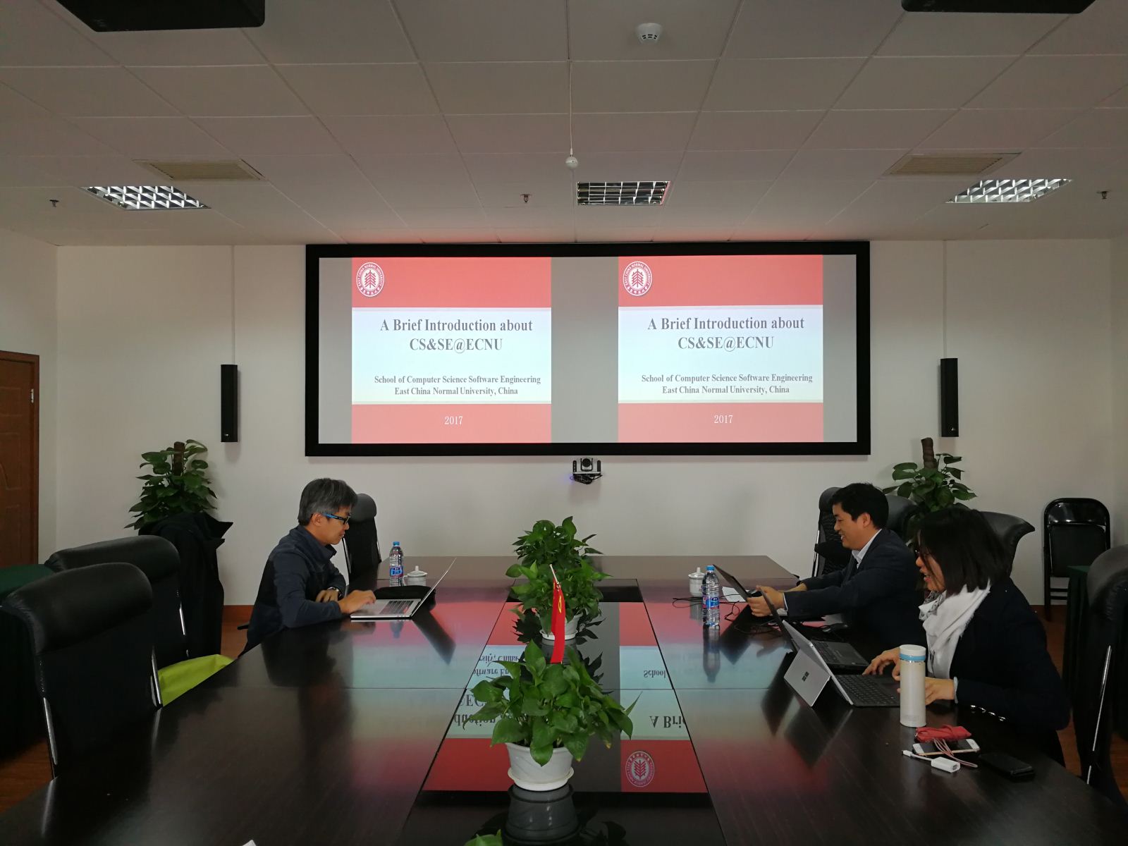 何积丰院士首先和杜教授进行了交流,随后王长波教授与张敏副教授对学院的国际合作交流与学科成果进行了简要的介绍。双方就学生联合培养、教授互访、双边研讨会等开展深入讨论。学院一直非常重视国际合作与交流,也已通过各种形式与许多国外知名高校在科研、教学等多方面开展实质合作并获得一定成效,也希望在未来与拉筹伯大学开展全方位多角度的合作。