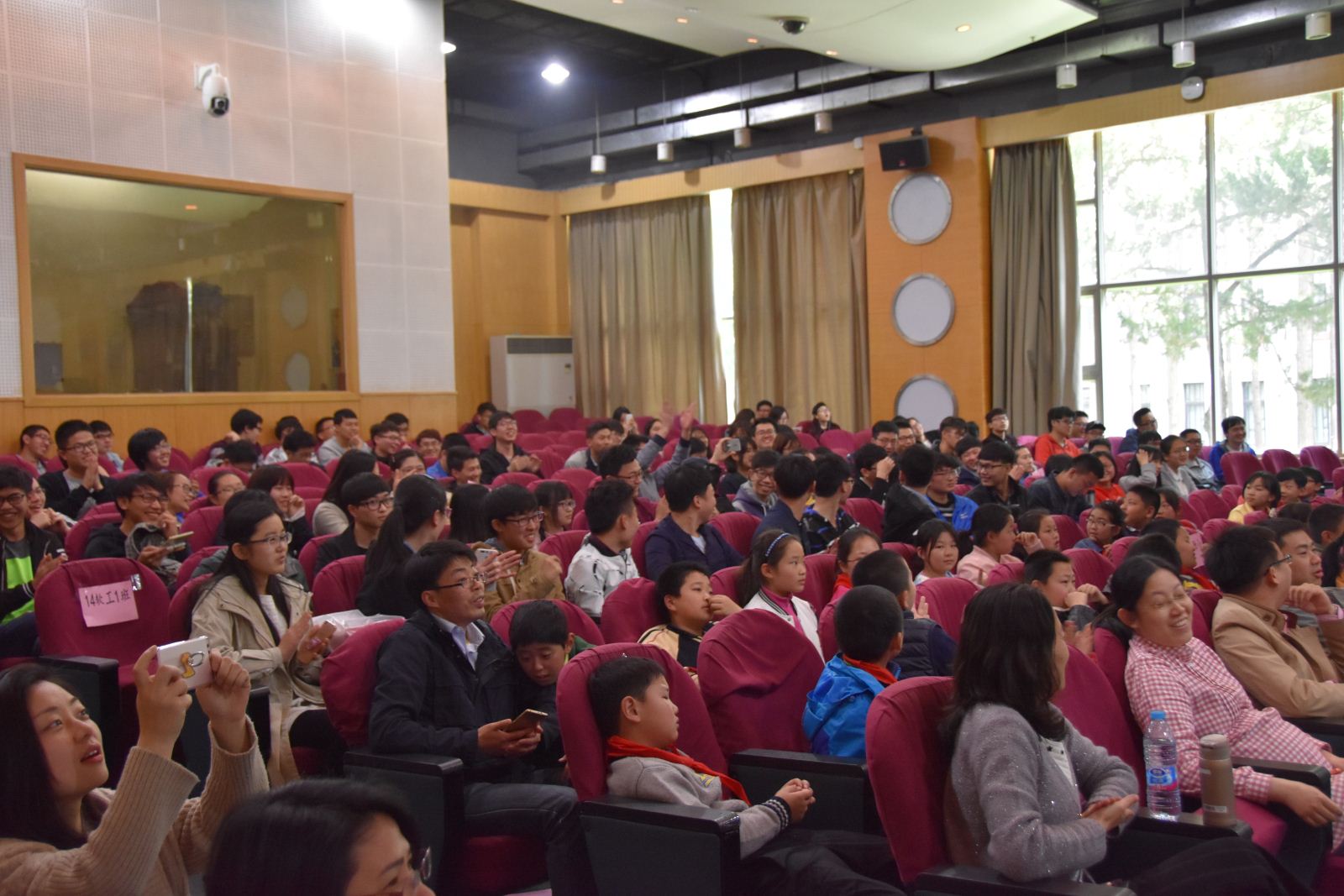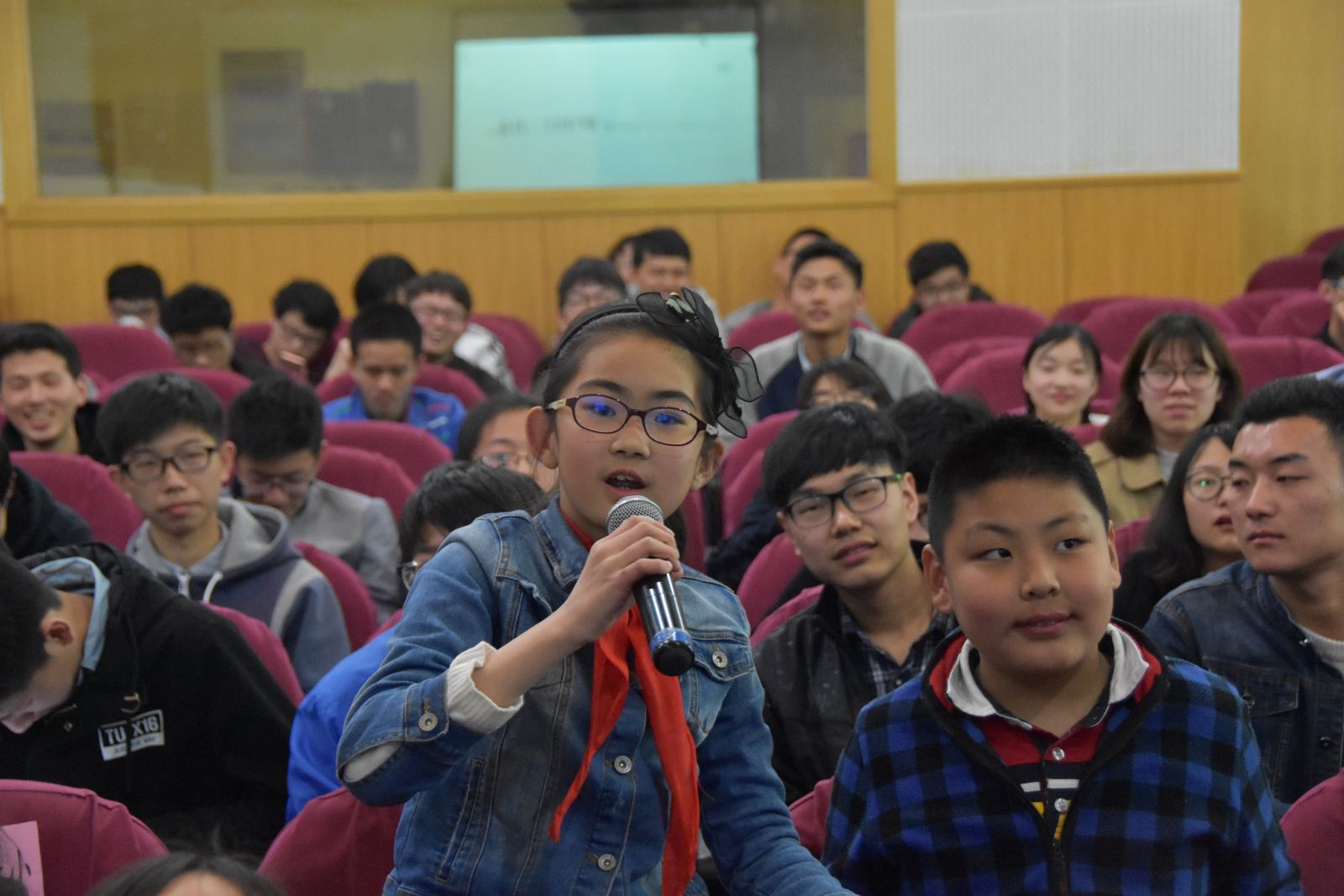 来自华师大附小四年级一班的三十多位小朋友也来到了诗词大会的现场。他们饱含热情,不断高喊出答案,现场氛围十分活跃。在第二轮比赛开始之前,主办方专门设置了小朋友互动环节,他们积极抢答现场题目,充分展示了小朋友们对古诗词的喜爱与孜孜不倦的学习精神,而他们的诗词知识储备甚至让现场大学生们自愧不如。
