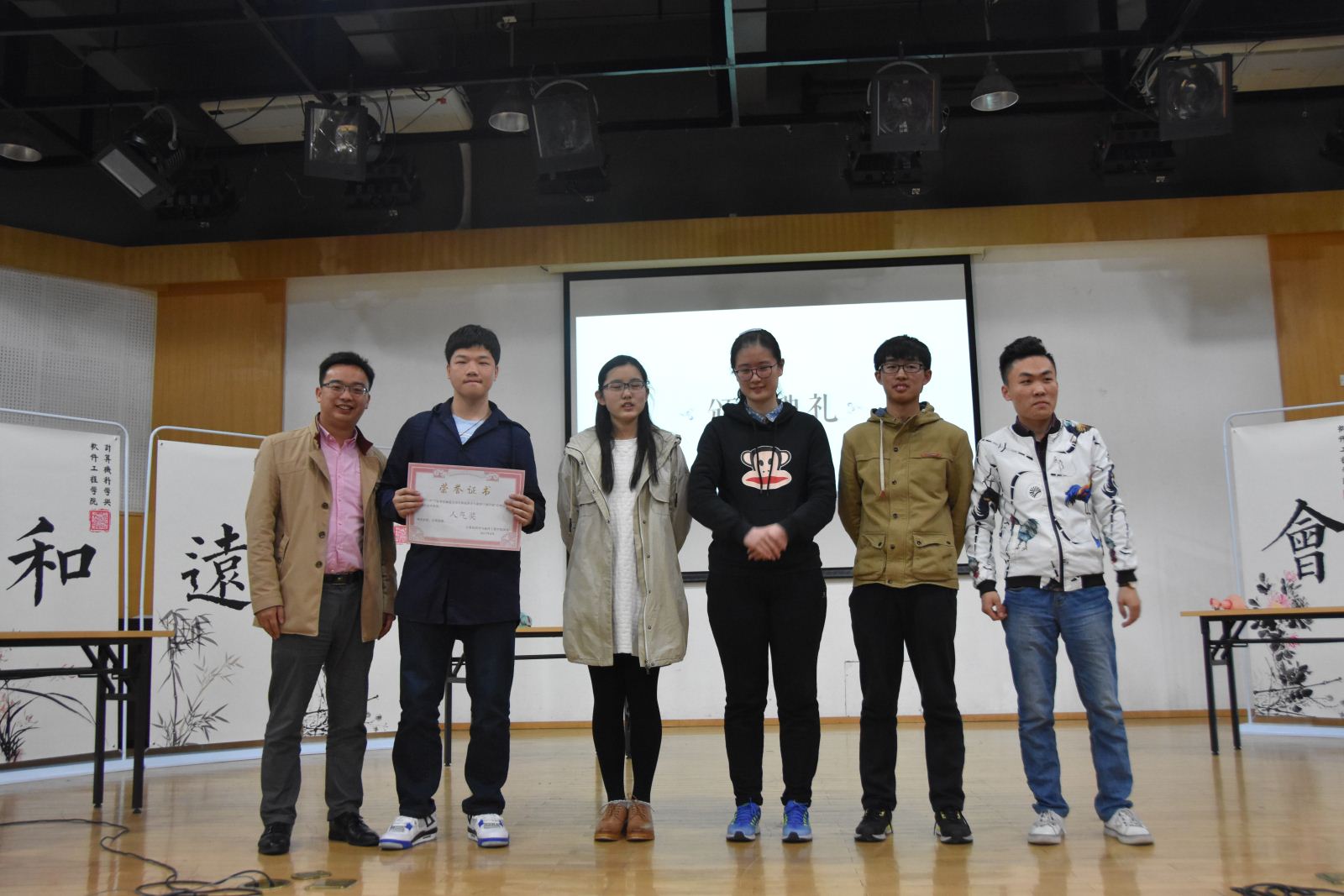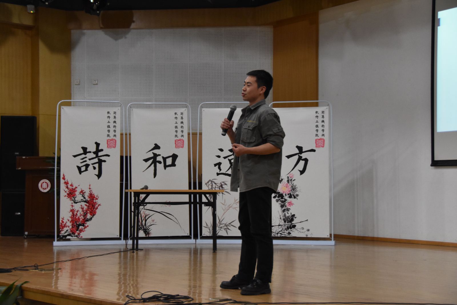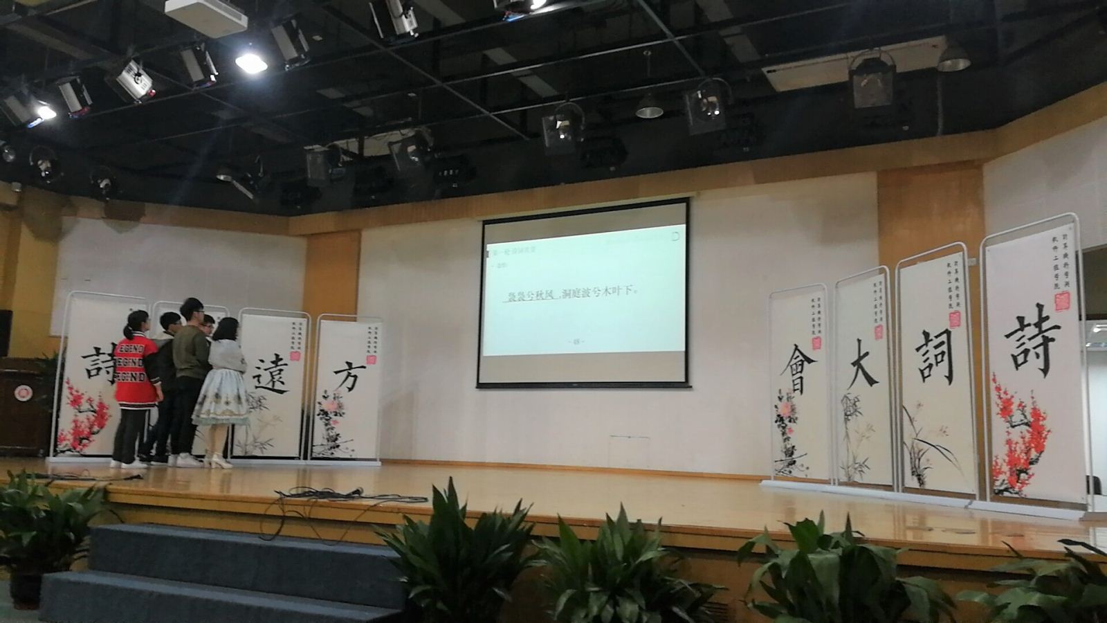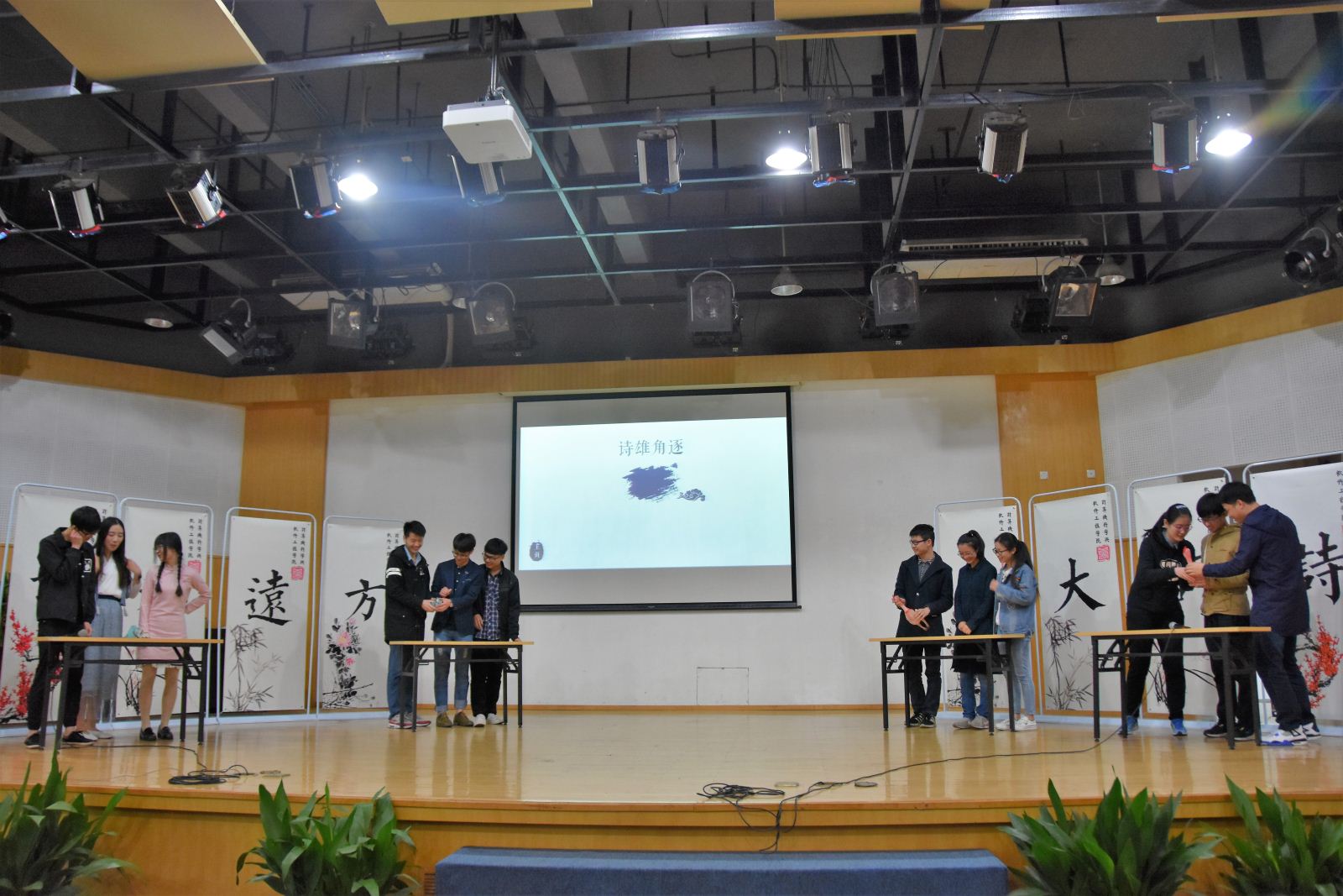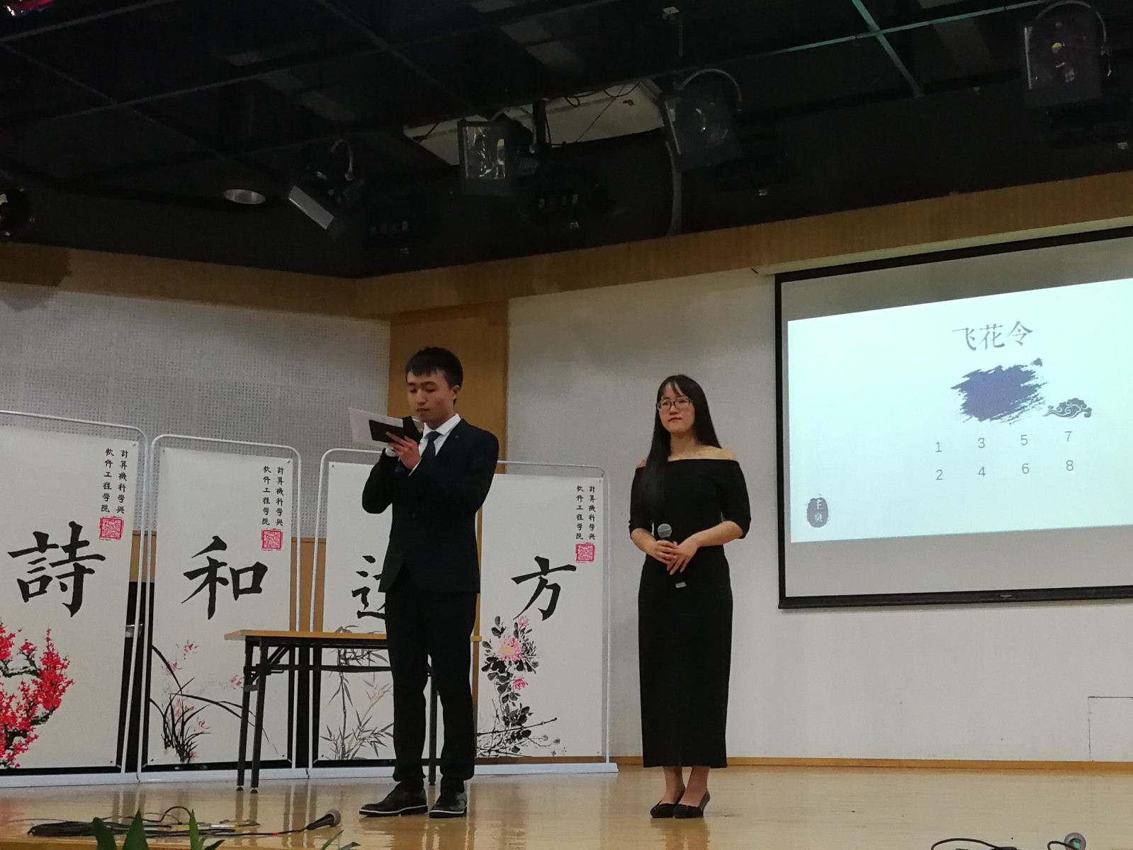 最后一轮比赛开始,四支队伍在抢答过程中各展风采,竞争更为激烈,在全部五十道题目结束之后,我们的诗词大会也落下了帷幕。洪燕老师和缪炜恺副教授也为此次大会作出精彩的点评和讲话,鼓励同学们在课外之余多看书,提高自身文学修养,忌沉迷游戏。