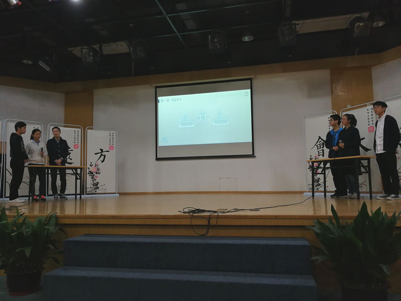 第二轮比赛为“飞花令”,两支队伍根据一个主题词,轮流说出包含这一主题词的诗句。六支队伍竞争十分激烈,其中14级1班和16级2班围绕“江”字开展激烈对决,经过不下30轮,14级1班才赢下比赛。“飞花令”的激烈程度令观众们大呼过瘾。
