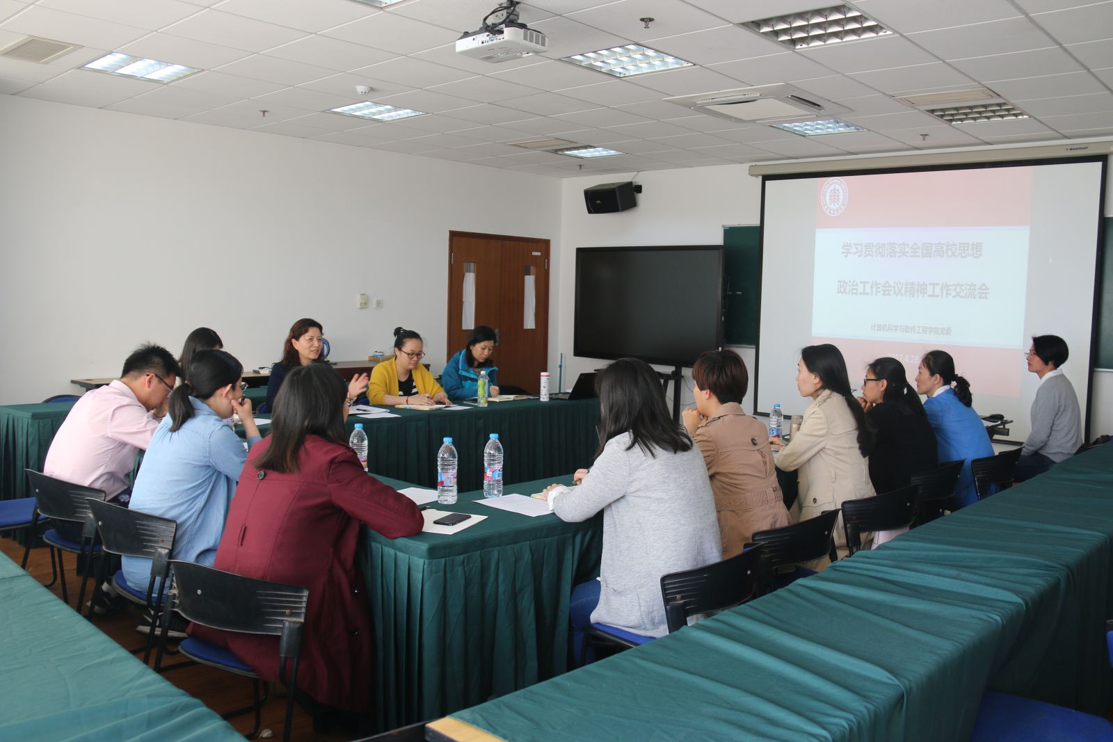4月28日上午,计算机科学与德赢官网Vwin关于学习贯彻落实全国高校思想政治会议精神的专题工作交流会在理科大楼B1002室举行。院党委书记李恺、院党委副书记洪燕、青年教师窦亮、学工部全体辅导员参加此次会议。本次会议聚焦学生思政工作特点,围绕学院学风建设举措,就如何贯彻落实全国高校思政工作会议精神展开深入交流讨论。会议由洪燕副书记主持。