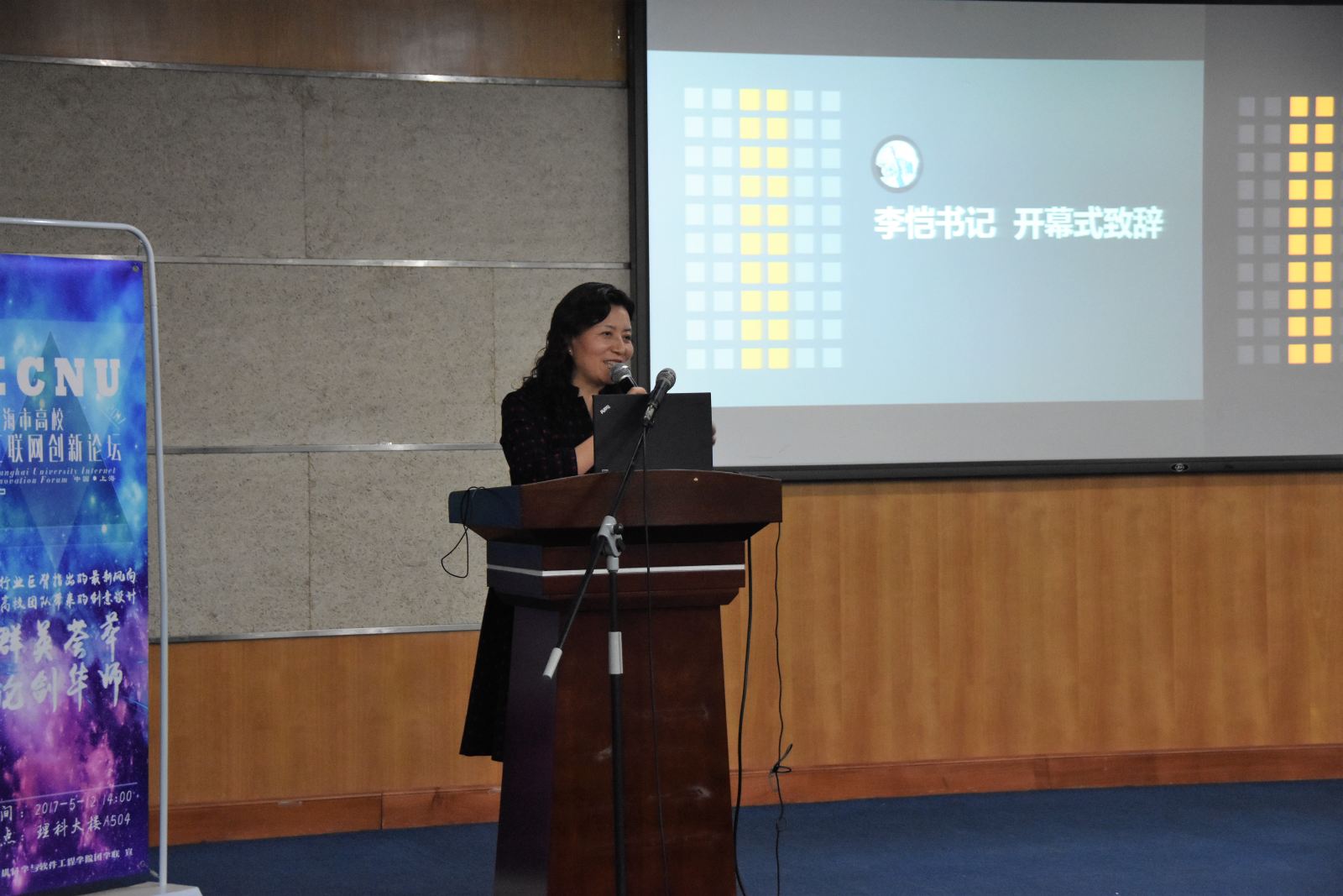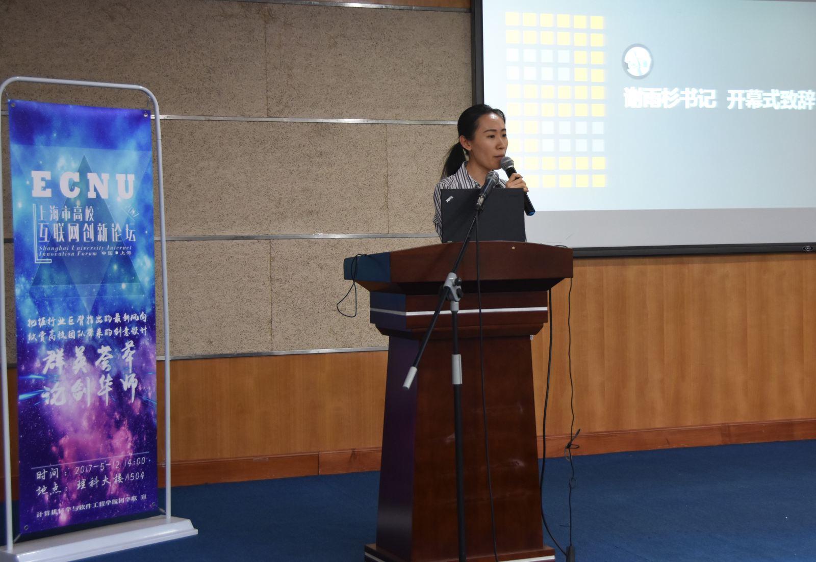 5月12日下午,上海市高校互联网创新论坛在德赢官网中北校区理科大楼A504报告厅隆重举行。此次论坛由共青团德赢官网Vwin委员会主办,计算机科学与德赢官网Vwin承办,来自复旦大学、上海交通大学、同济大学、上海科技大学、东华大学等高校的学生齐聚一堂,与德赢官网学生共同分享各自的创新实践经历,探讨前沿技术,认识行业发展。同济大学软件学院团委书记刘伟伟、东华大学计算机学院团委书记姜霖霖、游族网络技术专家委员会主席达万春等校外嘉宾出席了论坛,另外德赢官网团委副书记谢雨杉,计算机与软件学院党委书记李恺、副书记洪燕、副院长姜宁康也莅临论坛现场。