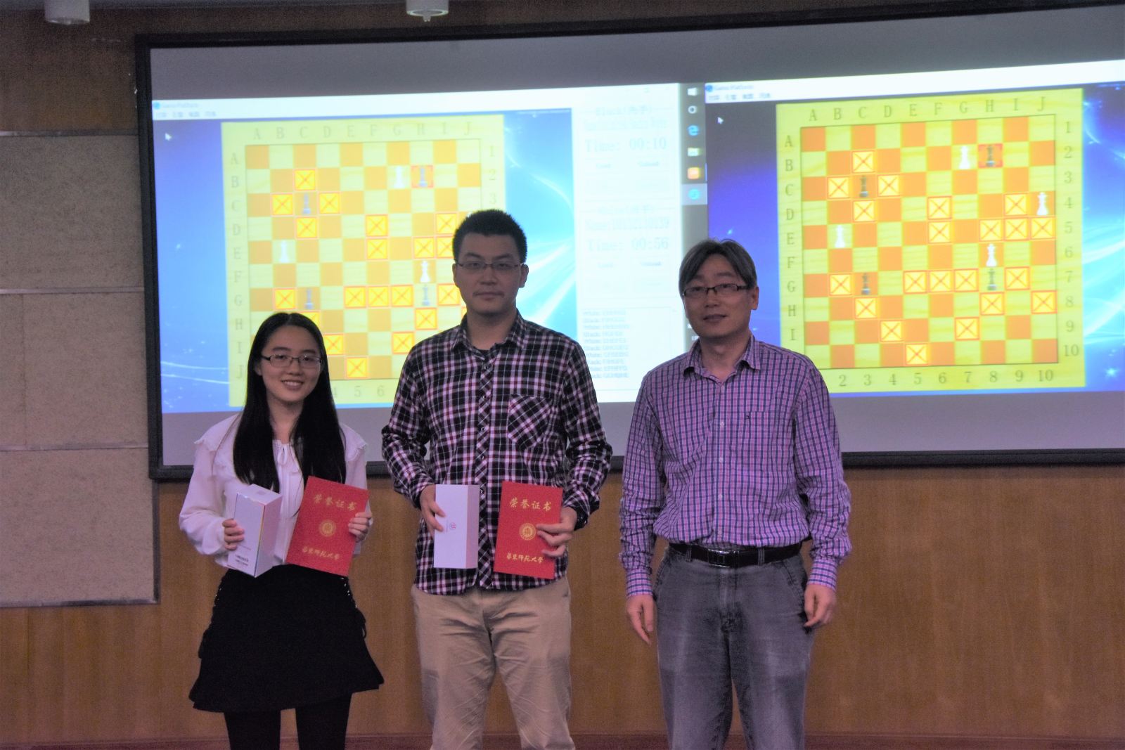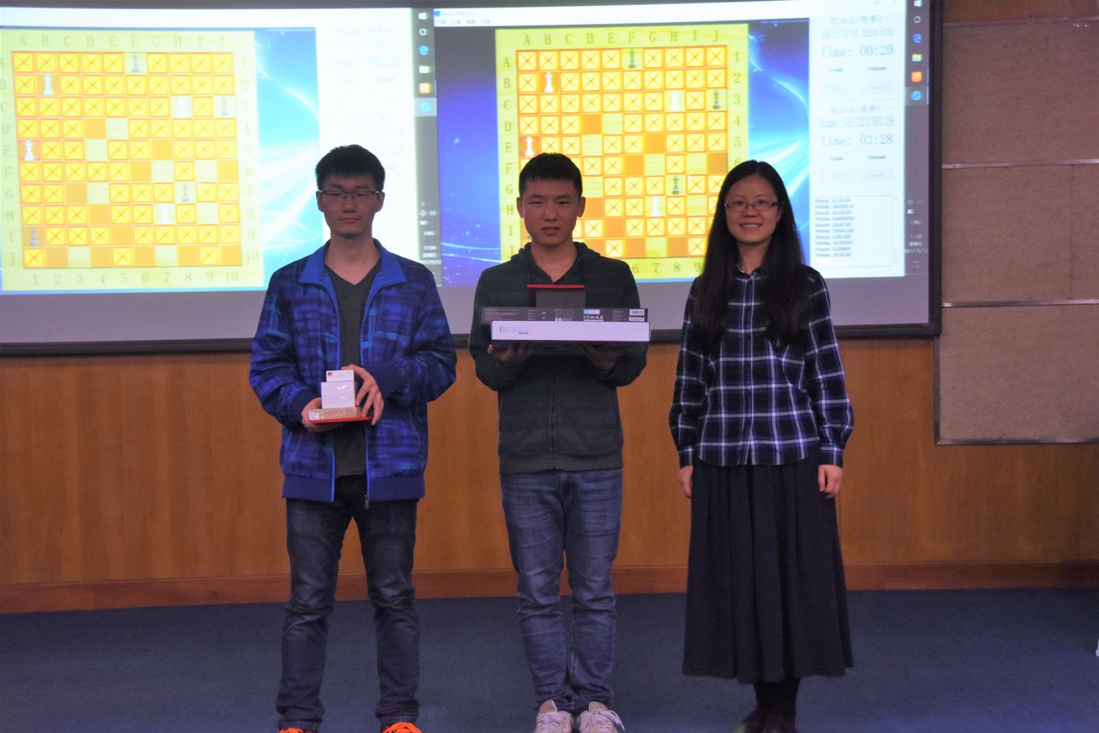 在各大高校优秀项目倾情展示过后,德赢官网Vwin首届趣味棋AI大赛举行现场决赛。此项赛事由计算机与软件学院科技创新协会首次举办,比赛采用亚马逊棋(详细规则可参考/Data/View/2508)。同学们用编写的人工智能程序现场对抗。最终周众欣的人工智能程序以2:1战胜周锐,夺得了德赢官网Vwin首届趣味棋AI大赛的冠军。
