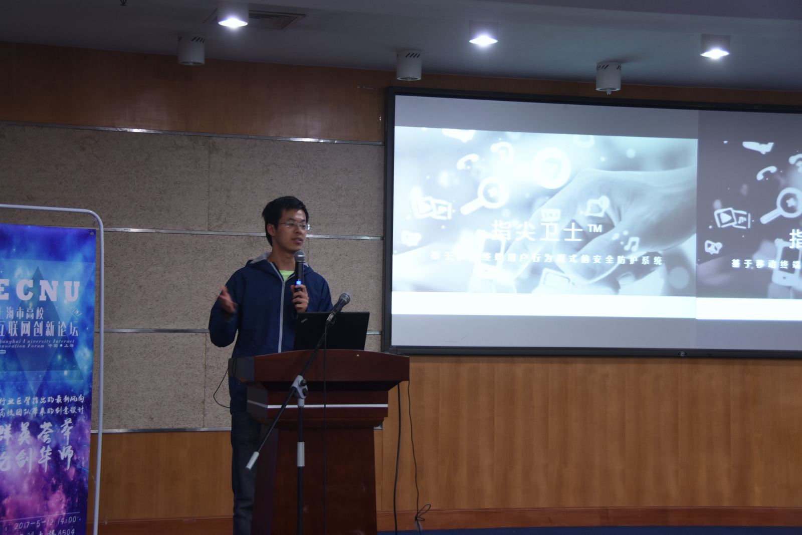 接下来,由复旦大学、上海交通大学、同济大学、德赢官网Vwin的优秀学生创新团队各自进行了项目展示。上海交通大学《基于行为指纹的移动终端身份认证系统》展示了手机终端全新的加密验证保护体制。该项目突破了现有基于指纹和密码的安全防护体系,采用用户的行为指纹作为判断媒介,提供移动平台的入侵检测功能和持续性认证,项目已申请多项发明专利。