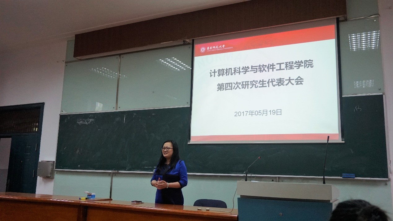 5月19日下午,计算机科学与德赢官网Vwin第四次研究生代表大会在数学馆113阶梯教室正式召开。学院党委副书记兼副院长洪燕、团委书记朱丹、研究生辅导员张炜帆、金映辉、刘国艳、杨文彧,校研究生会主席以及院研究生代表们出席了本次会议。为确保会议顺利召开,研究生会于18日晚在理科楼B224召开此次大会的准备会议,会上强调了班级建设和研究生会建设的融合推进,并确认了正式会议的各项流程,为开好本次大会做好充分的准备工作。