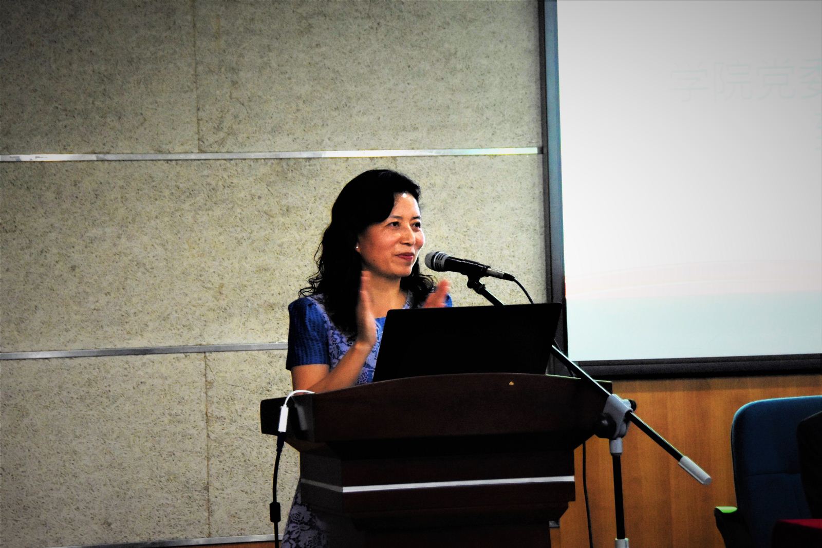 图4.常务副院长王长波汇报学院发展