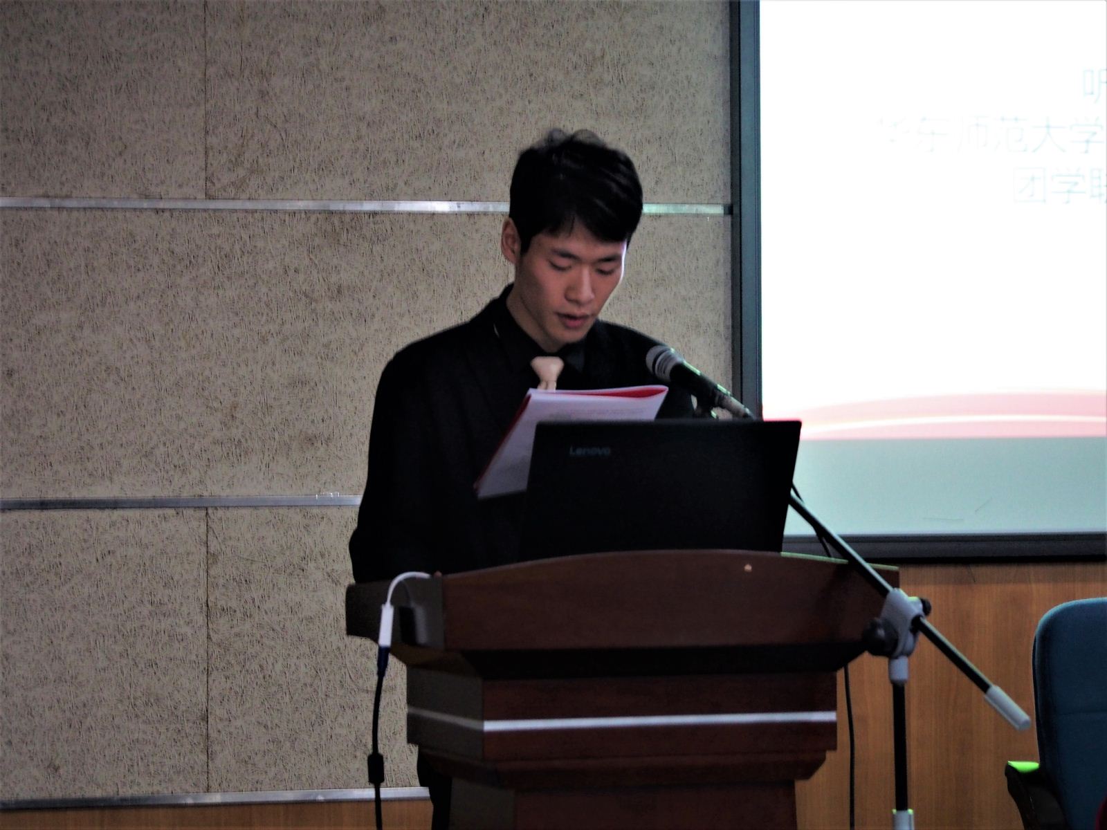 大会的最后团委书记朱丹老师发言,他肯定了上一届委员的工作,从工作、民主、热情、服务、引领五个方面向大家阐释如何做好青年领袖,为学生服务工作建设献出自己的一份力。并对未来团学联的发展提出了更高的期望与要求。