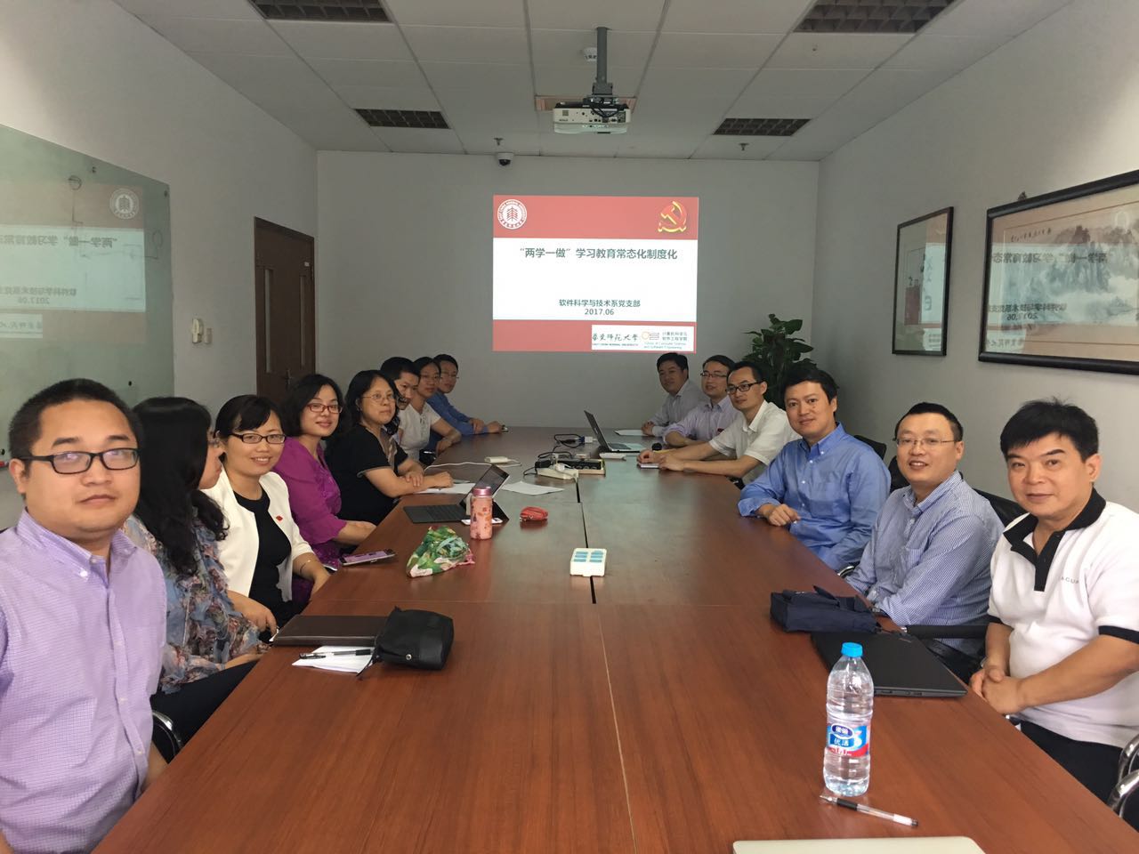 6月14日, 软件科学与技术系党支部全体党员在理科大楼B1102召开支部组织生活。在党支部书记彭超的带领下,与会党员认真学习了《中共德赢官网Vwin委员会关于推进“两学一做”学习教育常态化制度化的实施》和《关于在全校党员中开展“学党章党规、学系列讲话,做合格党员”学习教育方案》等文件和相关精神。彭超强调,党员教师要不断增强责任感和使命感,增强“四个意识”,切实做到“四个合格”,带头学思践悟、知行合一,发挥核心作用、发挥先锋模范作用,服务学校、学院改革发展和建设。