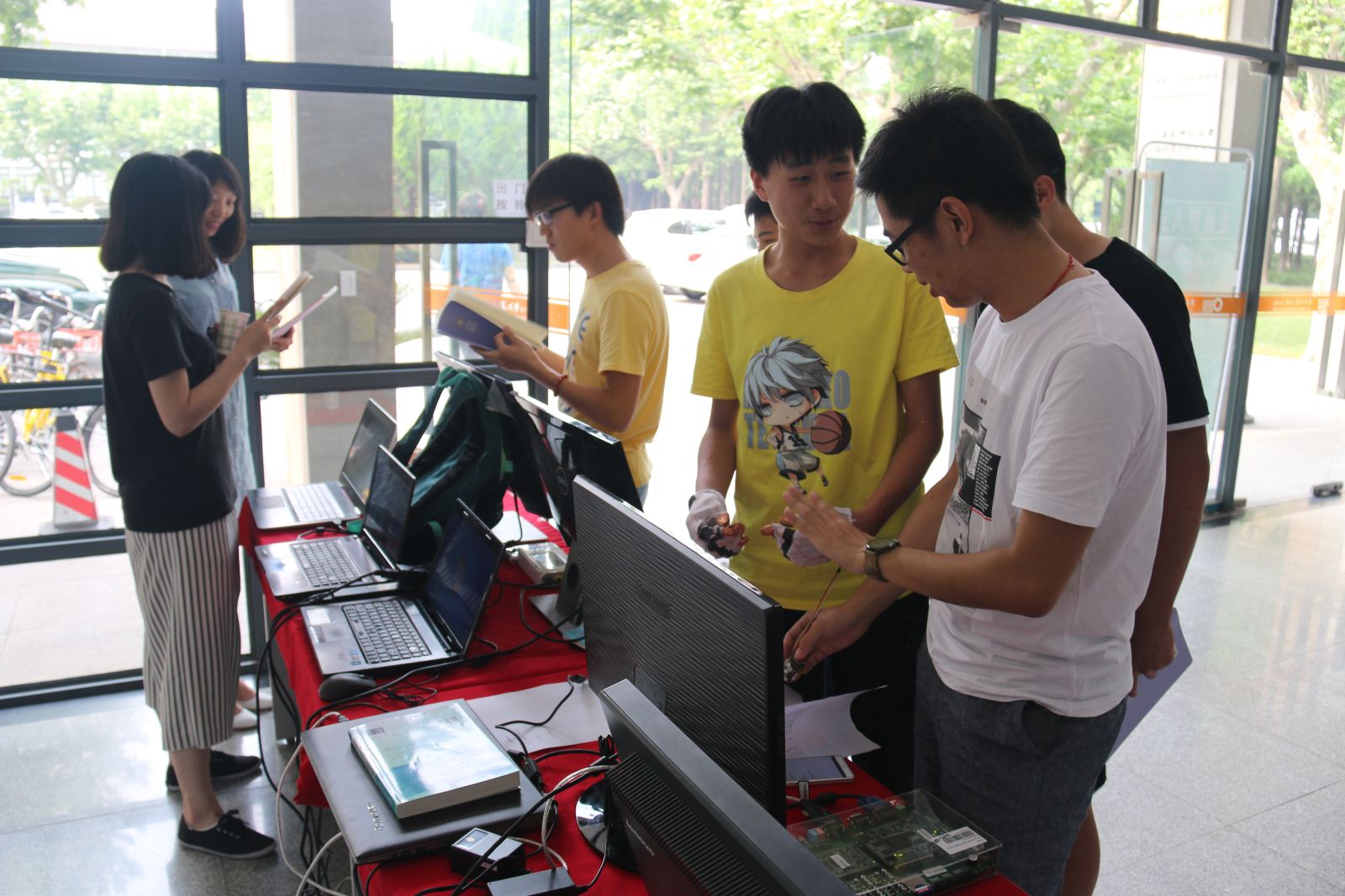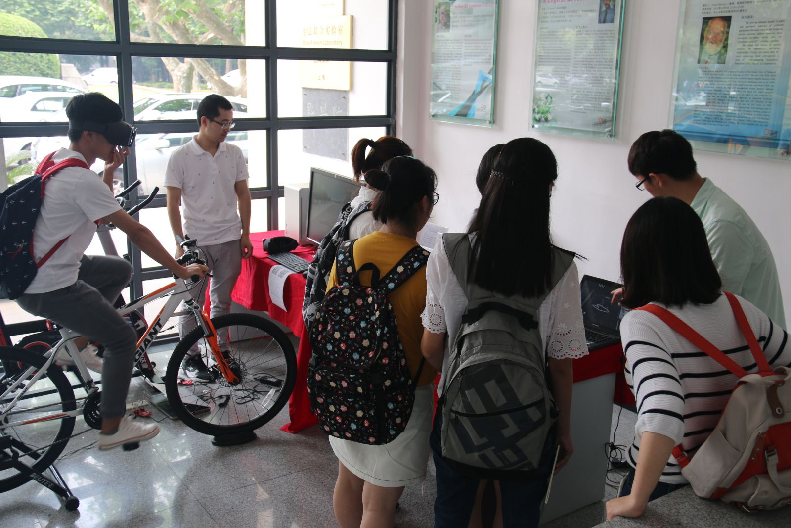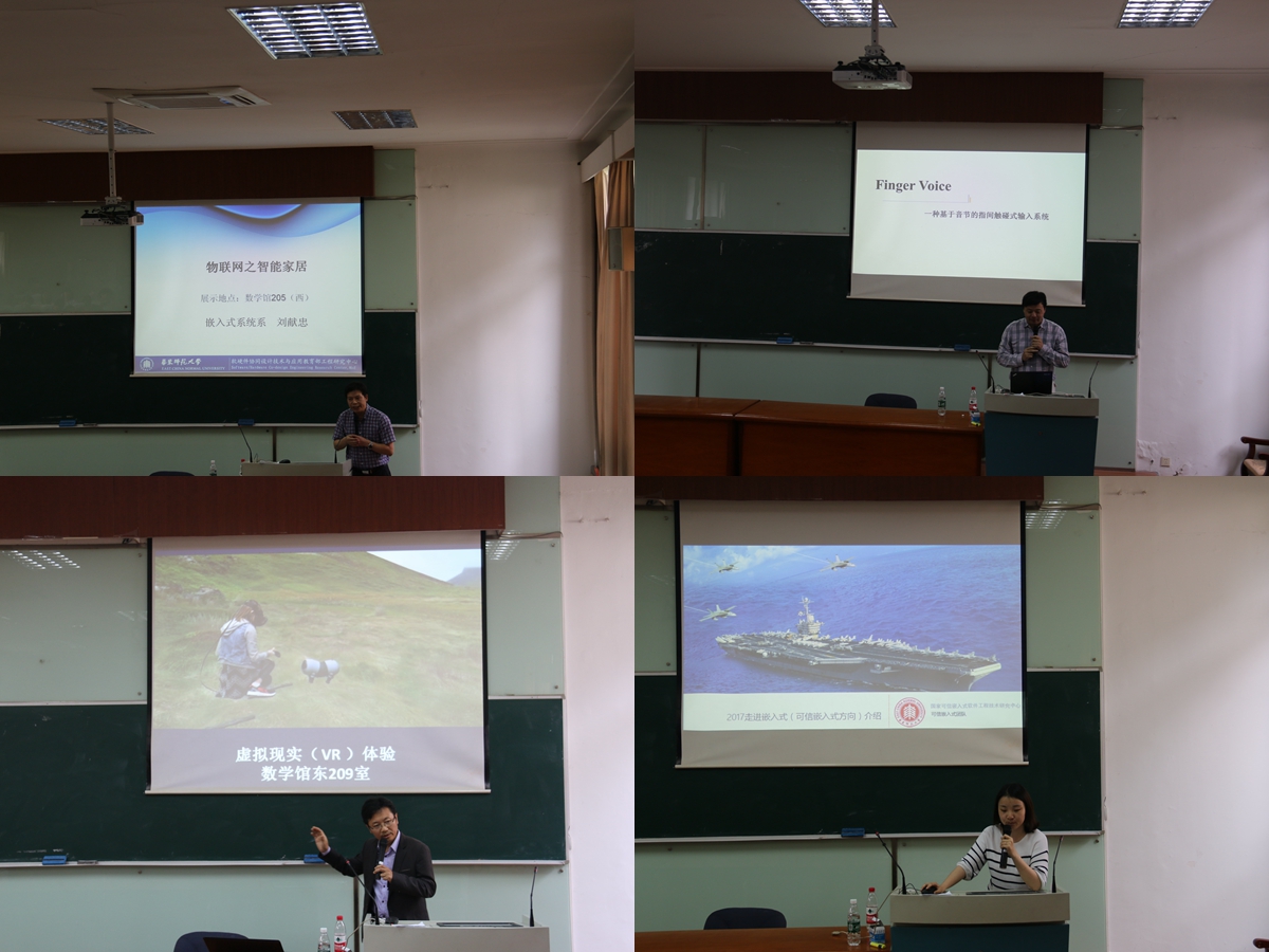 接着,本科生参观和体验了“虚拟骑行”、传感云交互平台、机器人和无人机、智能家居系统、音节输入的手套、可信软件工具、智能物联网系统、工控实景AR交互系统、图像处理硬件加速设备、kinect的生理机能检测、基于Multisim的电路原理仿真等项目,并与研究生进行了深入交流。