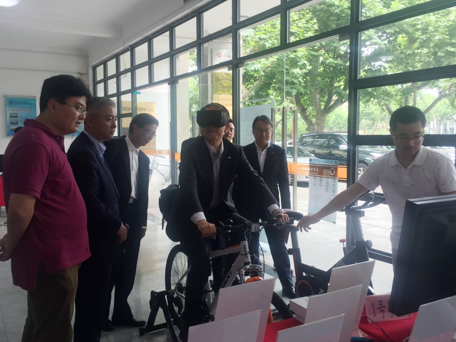 上午,王长波副院长带领日本专家参观了开放日现场,并体验了“虚拟骑行”项目。日本专家对嵌入式系/国家工程中心的科研成果给予了充分的肯定。