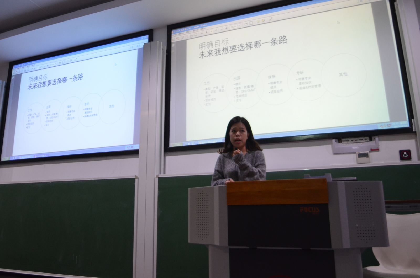 陈子溦作为百度产品经理,与同学们交流分享了自己的心路历程,言语亲切真诚。她首先强调了在初入大学时明确目标的重要性,也向同学们分享了自己的大学生活安排。陈子溦以自己经历为例,提出学习方面大家要共同进步,专业知识是地基;学生活动当以院团学联、校学生会、社会活动为主要途径积极展开;项目经历方面她讲解了项目类型及其价值;在实习环节她认为大家应了解实习类型、明确自我定位。此外,她强调厚积薄发以及技能、思维、资源的重要意义。最后,她给予了学弟学妹真诚的祝福!