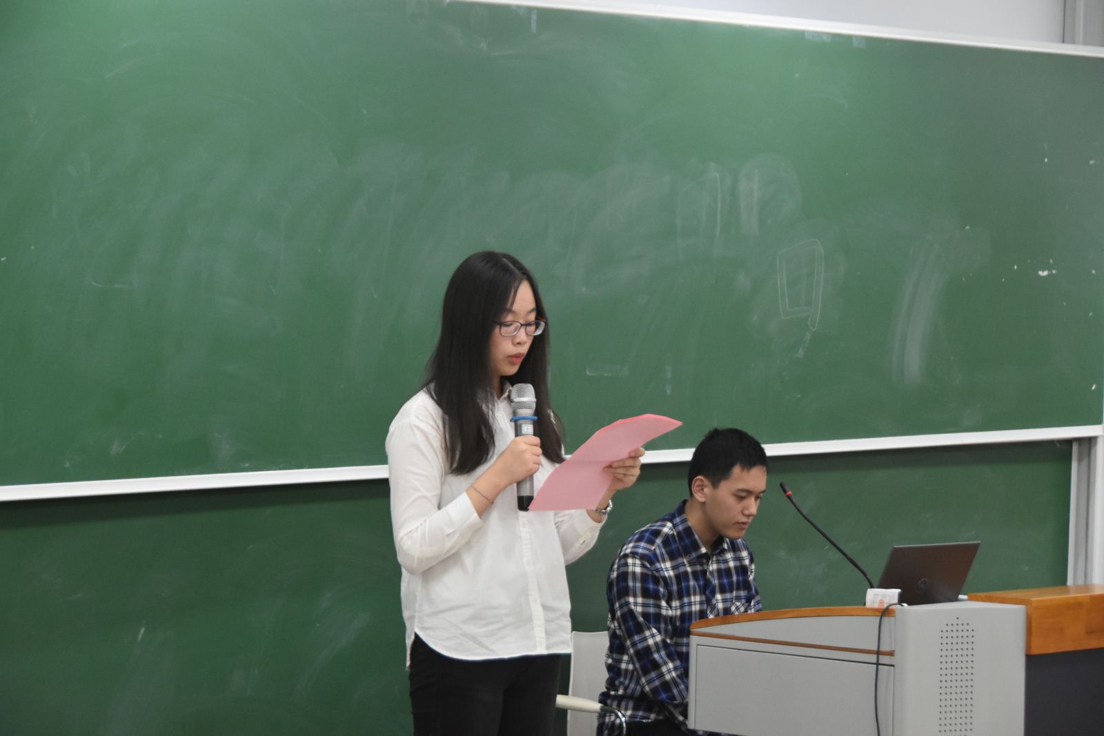 接下来是本届党章学习小组代表、计算机系研究生史夏琰同学发言,史夏琰同学表示,我们应该抓住机会,克服障碍,积极进取,并在实际生活中将理论知识实验运用,从而提高同学们的思想觉悟。同时,史夏琰同学作为代表,为按时参加党课、及时上报思想报告等事项做出了保证。