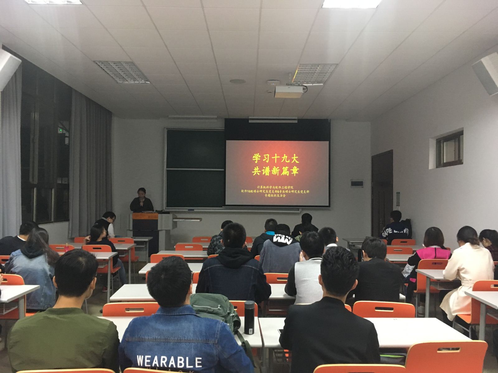 软件2017级专业学位硕士研究生党支部带领支部成员共同收看党代会中新增的“党员代表通道”环节,了解不同专业、领域的党员同志的看法和观点。之后,对于习总书记在会议中提出的新词汇,采用分组讨论的形式,组织党员同学们发表自己的看法和感想,加强同学们对于十九大报告的理解,活动中,同学们热情高涨,踊跃发言,气氛十分热烈。讨论结束之后,各小组还派出代表总结学习,同学们表示,此次学习帮助大家提高了思想素质,更加清楚地了解了党组织的各项方针政策。