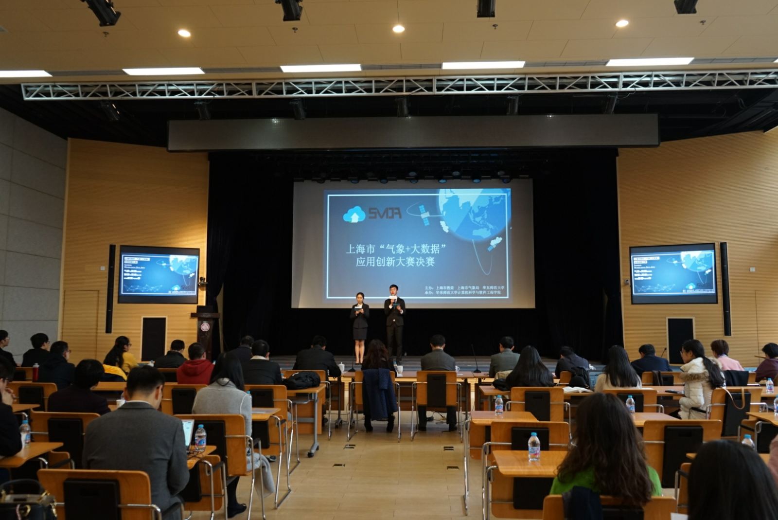 2017年12月9日上午,由上海市教委、上海市气象局和德赢官网Vwin主办,德赢官网Vwin计算机科学与德赢官网Vwin承办的上海市高校“气象+大数据”应用创新大赛决赛在上海市气象局落幕。上海市气象局副局长冯磊、应急与救灾处处长耿福海、气候中心主任谈建国、公共气象服务中心主任张晖、上海市教委学生处副处长吴能武、华东师大就业创业指导与服务中心主任阮平章、校团委书记刘麒、上海市青创大学生创业服务基金会秘书长王亚娟等多方专家担任评委,出席比赛的德赢官网领导有学院党委书记李恺、常务副院长王长波、副书记兼副院长洪燕等。